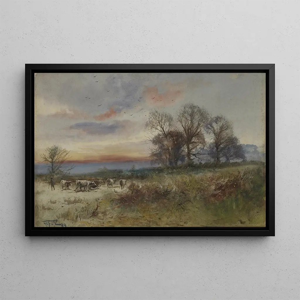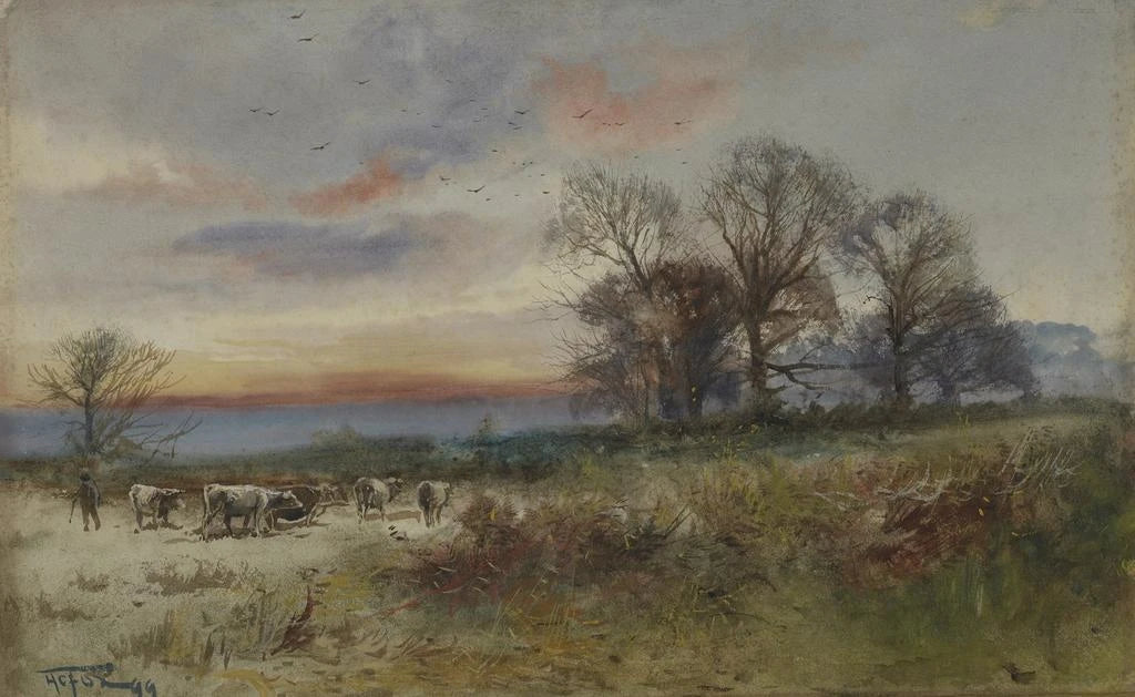 Sir William Fox, een Britse schilder uit de 19e eeuw, staat bekend om zijn weergaven van het landelijke leven en de natuur. Zijn werk past binnen de Victoriaanse kunstbeweging, waarin de nadruk lag op de schoonheid van landschappen en de eenvoud van het dagelijks leven. Geïnspireerd door de impressionisten, wist Fox het licht en de sfeer van zijn onderwerpen met een unieke gevoeligheid vast te leggen. Zijn carrière, gekenmerkt door een voortdurende verkenning van landelijke thema's, maakte hem tot een gerespecteerde kunstenaar, wiens werken nog steeds kunstliefhebbers inspireren.