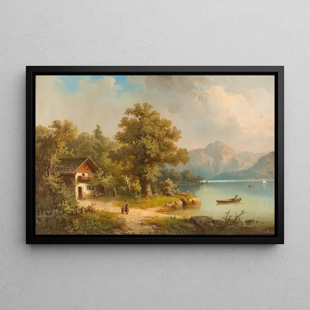 Au lac de Lucerne : een alpine sereniteit binnen handbereik De kunstdruk Au lac de Lucerne roept een rustige scène op waarin de natuur en de architectuur harmonieus samenkomen. De zachte tinten van het water, de reflecties van de bergen en de drijvende wolken creëren een sfeer van rust en contemplatie. De techniek van Guido Hampe, die gebruikmaakt van delicate penseelstreken, brengt dit idyllische landschap tot leven en nodigt de kijker uit om zich onder te dompelen in dit rustgevende uitzicht. Elk detail, van de zeilboten tot de groene oevers, draagt bij aan een evenwichtige compositie die de toeschouwer meeneemt naar een moment van alpine sereniteit. Guido Hampe : een kunstenaar met een hart voor Zwitserse landschappen Guido Hampe, Zwitserse schilder uit het begin van de 20e eeuw, is bekend om zijn weergaven van Zwitserse landschappen, waarin hij de natuurlijke schoonheid van zijn geboorteland vastlegt. Geïnspireerd door de impressionistische beweging, wist Hampe techniek en emotie te combineren, waardoor werken ontstonden die resoneren met het licht en de sfeer van de plaatsen die hij afbeeldt. Zijn werk wordt gekenmerkt door een bijzondere gevoeligheid voor variaties in licht en kleur, wat hem in staat stelt een unieke visuele ervaring over te brengen. Door het benadrukken van iconische landschappen zoals het meer van Lucerne, heeft Hampe bijgedragen aan de waardering van de Zwitserse natuur in de kunst. Een decoratief kunstwerk met vele voordelen De kunstdruk Au lac de Lucerne is een perfecte decoratieve keuze om je leefruimte te verrijken, of het nu in een woonkamer, kantoor of slaapkamer is. De afdrukkwaliteit garandeert een indrukwekkende fideliteit aan de nuances en details van het originele werk, en brengt een vleugje sereniteit en elegantie in je interieur. Door deze doek in je decoratie te integreren, creëer je een boeiend middelpunt dat uitnodigt tot dromen en contemplatie. Dit kunstwerk verfraait niet alleen je ruimte, maar roept ook de tijdloze schoonheid van Zwitserse landschappen op, en brengt een rustgevende sfeer in je dagelijks leven.