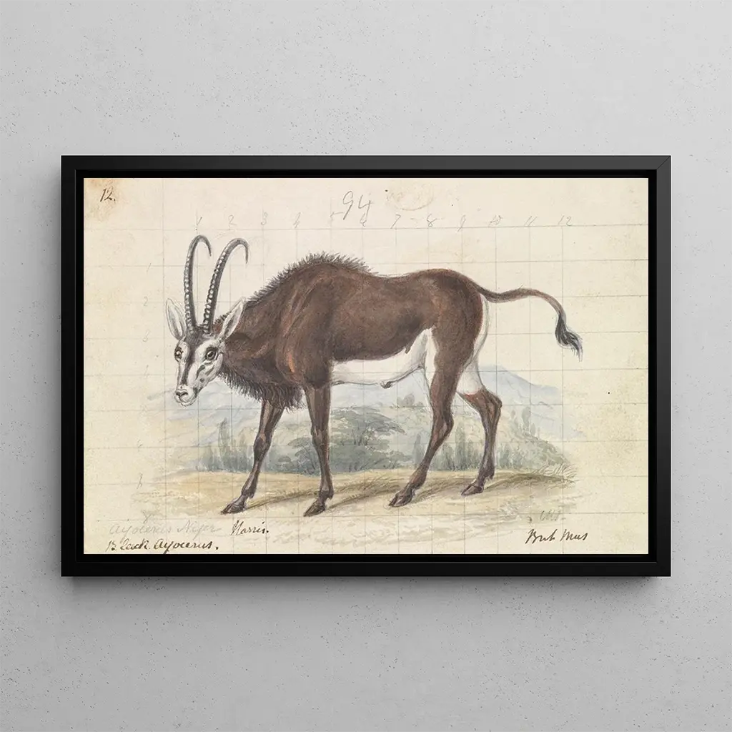 Antilope zand : een wilde elegantie gevangen De kunstdruk "Antilope zand" van Charles Hamilton Smith is een fascinerende weergave van dit majestueuze dier, waarbij het licht speelt op de nuances van zijn gouden vacht. De compositie, zowel dynamisch als harmonieus, benadrukt de gratie van de antilope in haar natuurlijke habitat. De warme, aardse kleuren roepen de savanne op, terwijl de minutieuze details van de vacht en de horens een verbluffende diepte toevoegen aan dit doek. De algemene sfeer is doordrenkt van een wilde sereniteit, die de kijker uitnodigt om te ontsnappen naar een wereld waar de natuur heerst. Charles Hamilton Smith : een pionier van de naturalistische kunst Charles Hamilton Smith, actief in het begin van de 19e eeuw, wordt erkend voor zijn bijdragen aan de naturalistische kunst, een beweging die erop gericht is de fauna en flora met een verbluffend realisme weer te geven. Geïnspireerd door zijn reizen en veldstudies, wist Smith de essentie van zijn onderwerpen vast te leggen, verder gaand dan eenvoudige representatie om een echte emotie over te brengen. Zijn werken, vaak geïnspireerd door wetenschap en observatie, speelden een sleutelrol in het onderwijzen van het publiek over biodiversiteit. De kunstdruk "Antilope zand" getuigt van zijn betrokkenheid bij de natuur en zijn talent om de schoonheid van dieren te vereeuwigen. Een decoratief stuk met vele voordelen De kunstdruk "Antilope zand" is een ideaal decoratief stuk om je interieur te verrijken, of het nu in een woonkamer, kantoor of slaapkamer is. De kwaliteit van de afdruk en de trouw aan de originele kleuren maken van deze doek een echt esthetisch pluspunt. Door dit kunstwerk aan je inrichting toe te voegen, breng je een vleugje elegantie en natuur in je ruimte, terwijl je gesprekken over kunst en fauna uitlokt. Dit schilderij, door zijn schoonheid en boodschap, zal kunst- en natuurliefhebbers aanspreken en elke ruimte uniek en uitnodigend maken.