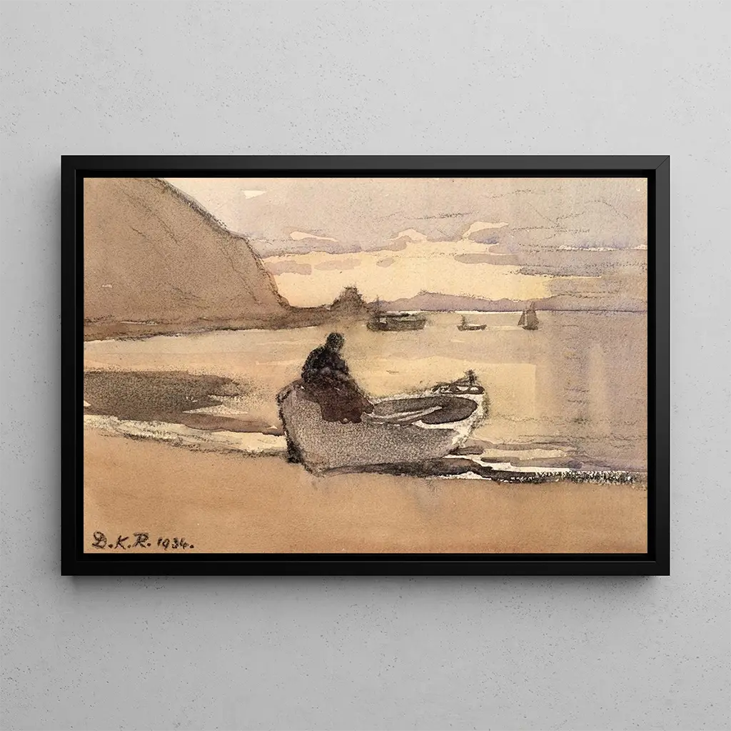 De kunstdruk Soir, baai van York door Dorothy Richmond vangt de essentie van een rustige schemering, waar de hemel zich kleurt in gouden en paarse tinten, weerspiegeld in het kalme water van de baai. De aquareltechniek, met finesse toegepast, maakt het mogelijk om subtiele gradaties te creëren die een serene en contemplatieve sfeer oproepen. De delicate details van de zeilboten en de verre silhouetten voegen een poëtische dimensie toe aan deze maritieme scène, en nodigen de kijker uit om onder te dompelen in deze vluchtige rust. Elke penseelstreek lijkt een verhaal te vertellen, dat van een moment dat in de tijd lijkt stil te staan, waarin natuur en mens in harmonie samenleven.