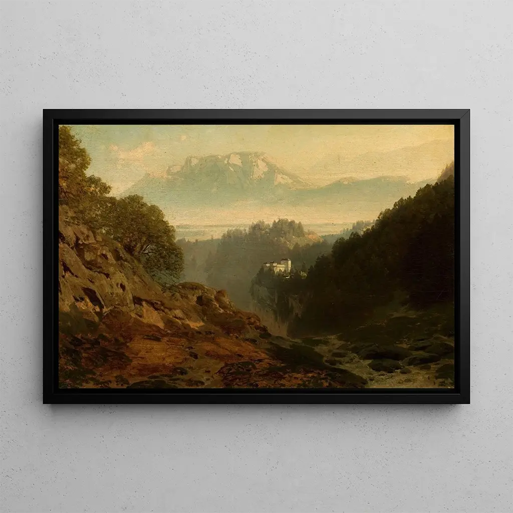 La kunstdruk du Paysage de montagne avec un château, réalisée par Ludwig Willroider, évoque une majesté naturelle qui captive le regard. Les sommets enneigés se dressent fièrement, tandis que le château, niché au cœur de ce décor grandiose, semble veiller sur la vallée en contrebas. Les couleurs vives et les contrastes saisissants entre les ombres et la lumière créent une atmosphère presque féerique. Willroider parvient à transmettre une sensation de grandeur et de tranquillité, invitant le spectateur à s'immerger dans ce paysage idyllique, où la nature et l'architecture se rencontrent harmonieusement.