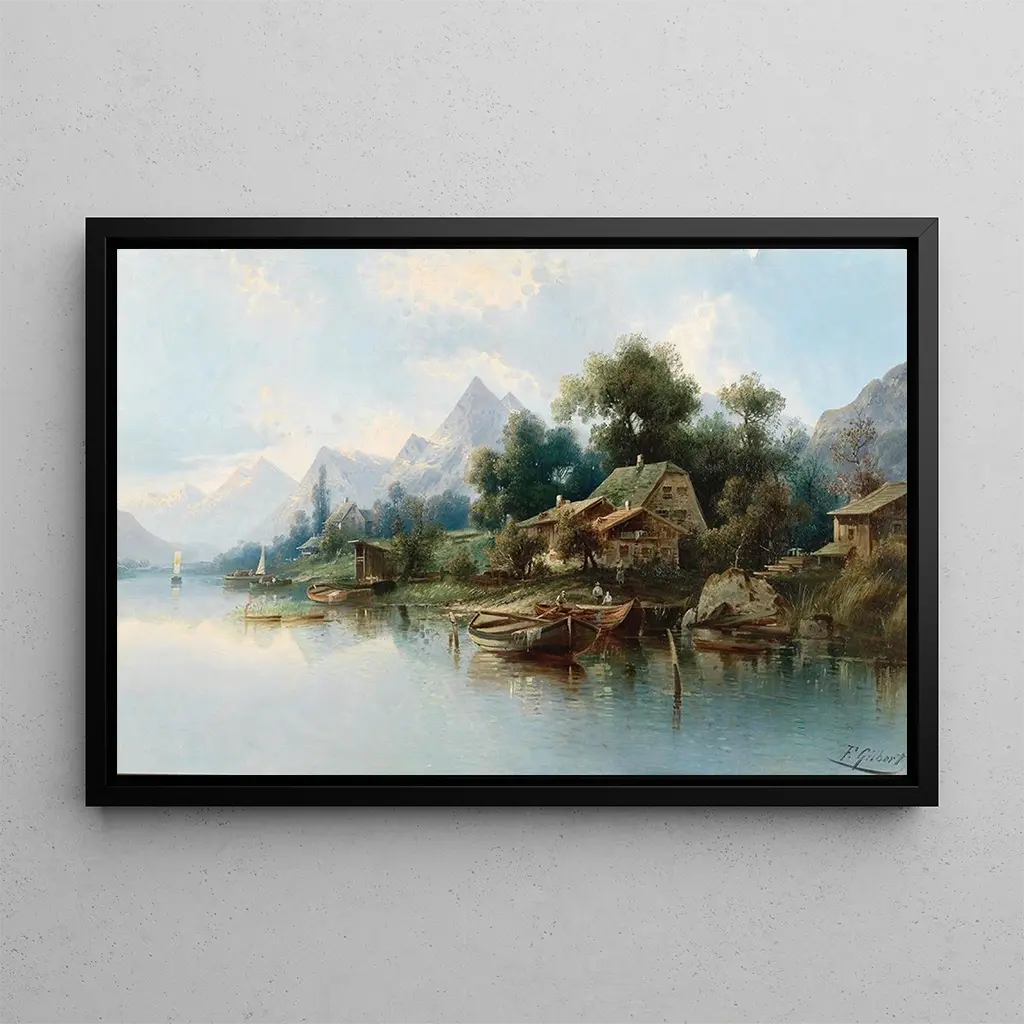 Bergmeer in de bergen: een alpine sereniteit binnen handbereik De kunstdruk van Bergmeer in de bergen brengt ons naar een idyllisch landschap, waar de majestueuze toppen weerspiegelen in het rustige water van het meer. De tinten groen en blauw mengen harmonieus, waardoor een rustgevende en contemplatieve sfeer ontstaat. De kunstenaar Karl Kaufmann vangt met verve het zonlicht dat danst op het wateroppervlak, wat een bijna magische dimensie aan deze scène toevoegt. De evenwichtige compositie, met zorgvuldig gerangschikte natuurlijke elementen, nodigt de kijker uit om te ontsnappen en te dromen, om de rust te voelen die alleen de natuur kan bieden. Karl Kaufmann: een schilder van de natuur uit de 19e eeuw Karl Kaufmann, actief in de 19e eeuw, is een kunstenaar wiens werken de schoonheid van natuurlijke landschappen vieren. Geïnspireerd door de romantische beweging, wist hij de grootsheid van de bergen en de sereniteit van de meren vast te leggen met een bijzondere gevoeligheid. Zijn schilderijen weerspiegelen een tijd waarin de verkenning van de natuur op haar hoogtepunt was, en Kaufmann heeft zich gevestigd als een meester in de weergave van deze betoverende landschappen. Zijn stijl, gekenmerkt door vloeiende penseelstreken en een rijke palet, getuigt van zijn liefde voor de natuur en zijn verlangen om emoties over te brengen via zijn werken. Een decoratieve aankoop met vele voordelen Deze kunstdruk van Bergmeer in de bergen is een perfecte decoratieve keuze om een vleugje natuur aan uw interieur toe te voegen. Of het nu in een woonkamer, kantoor of slaapkamer is, dit schilderij roept vrede en rust op, en creëert een ruimte die bevorderlijk is voor ontspanning. De afdrukkwaliteit garandeert een uitzonderlijke trouw aan de kleuren en details van het originele werk, waardoor elke kijker de schoonheid van het alpine landschap kan waarderen. Door deze doek in uw inrichting te integreren, geeft u uw ruimte een warme en inspirerende sfeer, terwijl u de kunst van de natuur viert.
