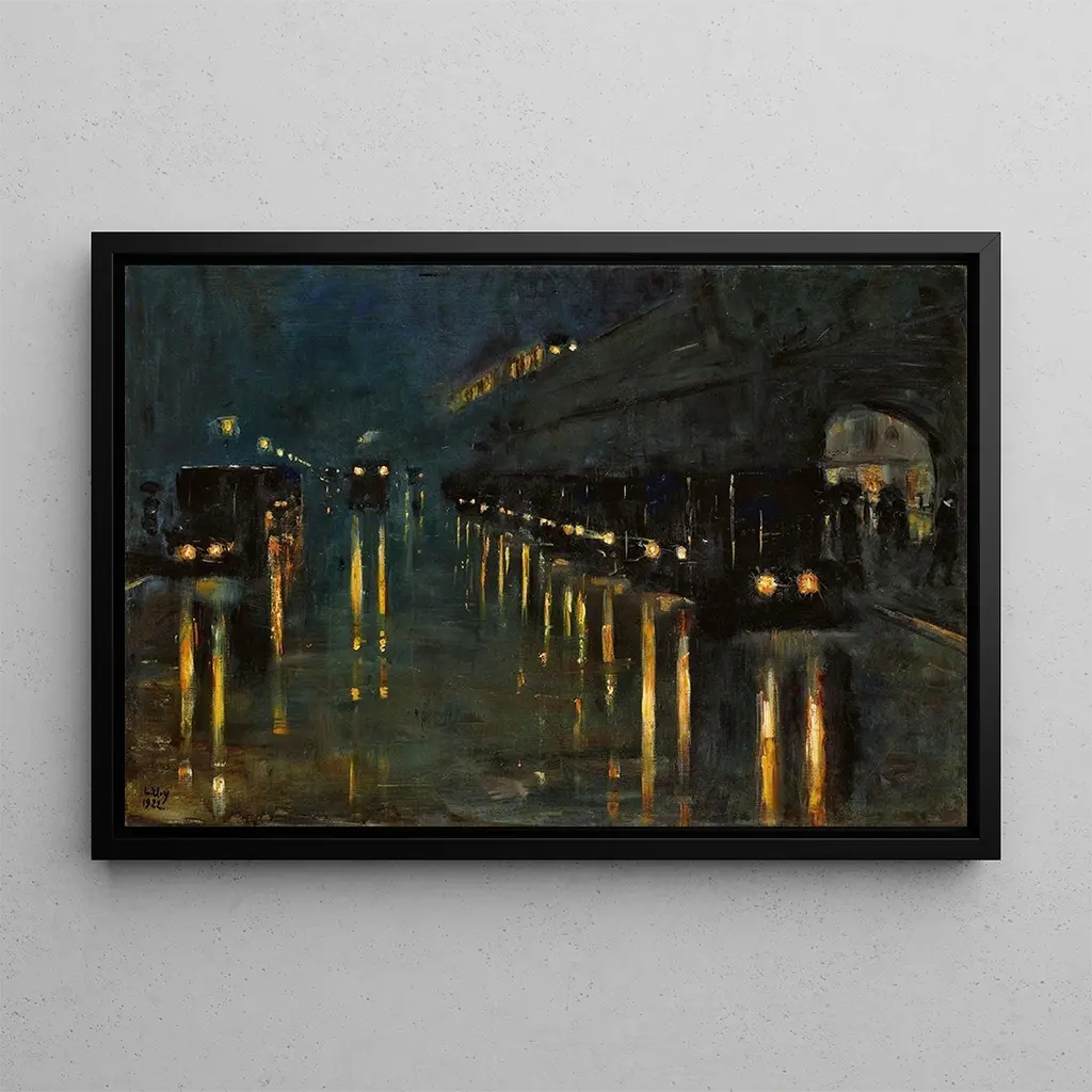 Met de "Station de métro aérien Blowstraße la nuit" van Lesser Ury brengt u een levendige kunstdruk die de bruisende energie van het nachtleven vastlegt. De fonkelende lichten van straatverlichting en etalages worden weerspiegeld op de natte kasseien, waardoor een sfeer ontstaat die zowel dynamisch als melancholisch is. Ury gebruikt donkere kleuren en lichte accenten om de diepte van de nacht te evoceren, terwijl de vage silhouetten van voorbijgangers een menselijke dimensie aan deze stedelijke scène toevoegen. De olieverftechniek van de kunstenaar geeft een rijke textuur en een meeslepende sfeer, waardoor de kijker wordt ondergedompeld in het hart van de stad. Lesser Ury: de kunstenaar van de stedelijke moderniteit Lesser Ury, een Duitse schilder actief aan het einde van de 19e en het begin van de 20e eeuw, staat bekend om zijn weergaven van het stadsleven, vooral in Berlijn. Geïnspireerd door het impressionisme, wist hij de nuances van licht en atmosfeer in zijn werken vast te leggen. Ury verkende vaak thema's als eenzaamheid en anonimiteit in de moderne stad, wat duidelijk wordt in "Station de metro aérien Blowstraße la nuit". Zijn unieke stijl en vermogen om emoties op te roepen door alledaagse scènes maken hem tot een belangrijke figuur binnen de moderne kunst, wiens nalatenschap kunstenaars tot op heden blijft inspireren. Een decoratief kunstdruk met vele voordelen Het kiezen van een kunstdruk van "Station de metro aérien Blowstraße la nuit" is een uitstekende manier om een vleugje stedelijkheid aan uw interieurdecoratie toe te voegen. Dit kunstwerk past perfect in een moderne woonkamer, een creatieve kantoorruimte of zelfs een slaapkamer, en brengt een dynamische en eigentijdse sfeer. De kwaliteit van de kunstdruk garandeert een trouwheid aan het originele werk, zodat u elk detail en elke kleur nuance kunt waarderen. Met zijn onmiskenbare esthetische aantrekkingskracht wordt deze doek een boeiend middelpunt dat de interesse en bewondering van uw gasten opwekt.