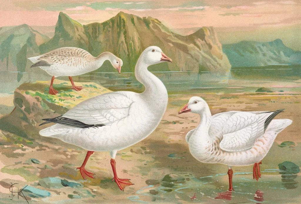 Johann Friedrich Naumann, natuuronderzoeker en ornitholoog uit de 19e eeuw, markeerde zijn tijd met zijn bijdragen aan biologie en kunst. Geïnspireerd door de wetenschappelijke ontdekkingen van zijn tijd, wist hij wetenschappelijke nauwkeurigheid te combineren met artistieke gevoeligheid. Zijn werken, vaak geïnspireerd door fauna en flora, getuigen van een periode waarin de verkenning van onbekende gebieden op haar hoogtepunt was. De kunstdruk van "Chen hyperboréen" past in deze context, en illustreert niet alleen de schoonheid van noordelijke landschappen, maar ook het belang van onderzoek naar fragiele ecosystemen.