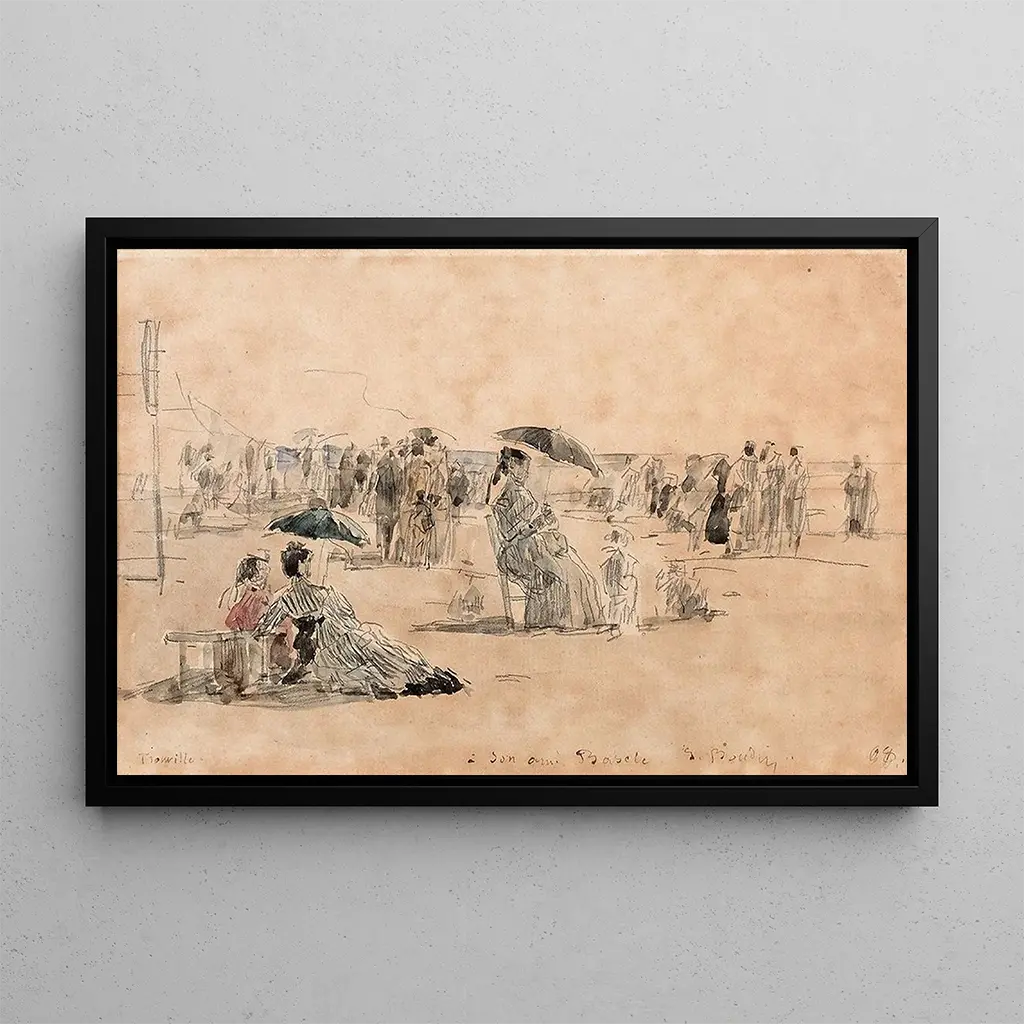 Crinolines op het Trouville-strand: een momentopname van het badleven De kunstdruk van Crinolines op het Trouville-strand vangt een vluchtig moment uit het zomerse leven van de 19e eeuw. De majestueus uitgewaaierde crinolines dansen op de wind, terwijl de golven van de zee het strand strelen. De pastelkleuren en het zachte licht roepen een sfeer van geluk en lichtheid op, typisch voor zonnige dagen aan de Normandische kust. Het werk van Eugène Boudin, met zijn impressionistische techniek, slaagt erin een gevoel van beweging en levendigheid over te brengen, waardoor elk uitzicht een reis door de tijd wordt. Eugène Boudin: de pionier van de plein-air schilderkunst Eugène Boudin wordt vaak beschouwd als een van de voorlopers van het impressionisme, die vele kunstenaars, waaronder Claude Monet, heeft beïnvloed. Geboren in 1824 in Honfleur, wijdde hij zijn carrière aan het vastleggen van licht en sfeer in maritieme landschappen en scènes uit het dagelijks leven. Zijn vernieuwende aanpak, die de voorkeur geeft aan schilderen in de open lucht, stelt hem in staat de nuances van de natuur met een zeldzame gevoeligheid te vast te leggen. De kunstdruk van Crinolines op het Trouville-strand illustreert perfect zijn talent om eenvoudige en poëtische momenten te vereeuwigen, terwijl het de evolutie van de kunst in zijn tijd weerspiegelt. Een decoratief stuk met vele voordelen De kunstdruk van Crinolines op het Trouville-strand is een decoratieve keuze die uw interieur zal verrijken. Of het nu in een woonkamer, eetkamer of kantoor is, dit schilderij brengt een vleugje elegantie en charme. De afdrukkwaliteit garandeert een opmerkelijke fideliteit aan de kleuren en details van het originele werk, terwijl het een onmiskenbare visuele aantrekkingskracht biedt. Door deze doek in uw inrichting te integreren, brengt u een stukje geschiedenis en kunst in uw dagelijks leven, en creëert u een warme en uitnodigende sfeer.