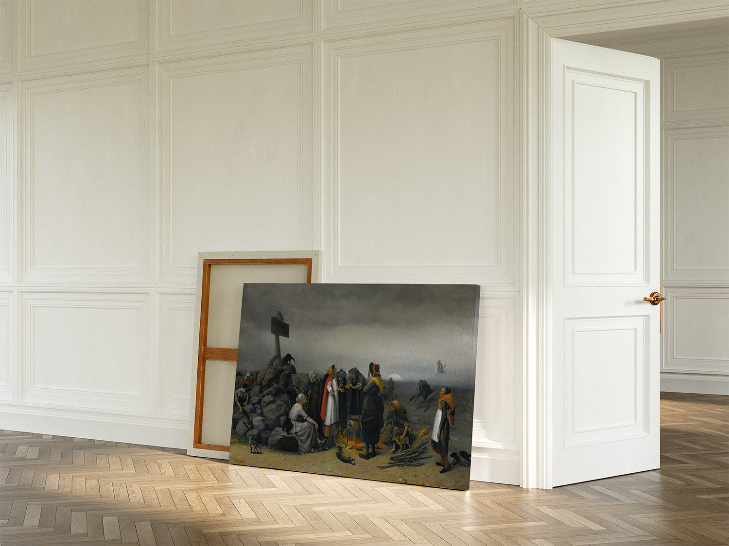 De conventie van heksen: een duik in de mystieke wereld De kunstdruk van De conventie van heksen door William Holbrook Beard brengt ons in een wereld waar mysterie en magie samenkomen. Dit boeiende doek, rijk aan details, beeldt een intrigerende scène uit waarin heksen zich verzamelen rond een borrelende ketel. De donkere kleuren en de tinten groen creëren een betoverende en tegelijkertijd verontrustende sfeer, terwijl de techniek van de kunstenaar, die realisme en fantasie combineert, deze voorstelling tot leven brengt. De expressieve gezichten van de personages en de symbolische elementen in de compositie versterken het idee van een oud ritueel, vol geheimen en vergeten tradities. William Holbrook Beard: een pionier van de Amerikaanse fantasy William Holbrook Beard, actief in de 19e eeuw, staat bekend om zijn verkenning van fantastische en mythologische thema's. Geïnspireerd door de romantische beweging onderscheidde hij zich door zijn werken die realisme combineren met folkloristische en legendarische elementen. Beard wist het collectieve verbeeldingsvermogen van zijn tijd vast te leggen door motieven uit de populaire cultuur en oude overtuigingen in zijn creaties te integreren. Zijn werk had een grote invloed op de Amerikaanse kunst en opende de weg voor andere kunstenaars die vergelijkbare onderwerpen wilden verkennen. De conventie van heksen is een emblematisch voorbeeld van zijn unieke stijl, die alledaagse en bovennatuurlijke elementen vakkundig combineert. Een decoratief stuk met vele voordelen Kiezen voor de kunstdruk van De conventie van heksen betekent kiezen voor een decoratief stuk dat interesse en nieuwsgierigheid opwekt. Of het nu in een woonkamer, kantoor of slaapkamer is, dit boeiende schilderij trekt de aandacht en nodigt uit tot nadenken. De kwaliteit van de reproductie garandeert een opmerkelijke fideliteit aan de details van het originele werk, zodat je kunt genieten van de volledige visuele rijkdom van het doek. Met zijn onmiskenbare esthetische aantrekkingskracht past deze kunstdruk perfect in diverse decoratiestijlen en voegt het een vleugje originaliteit en mysterie toe aan je interieur.