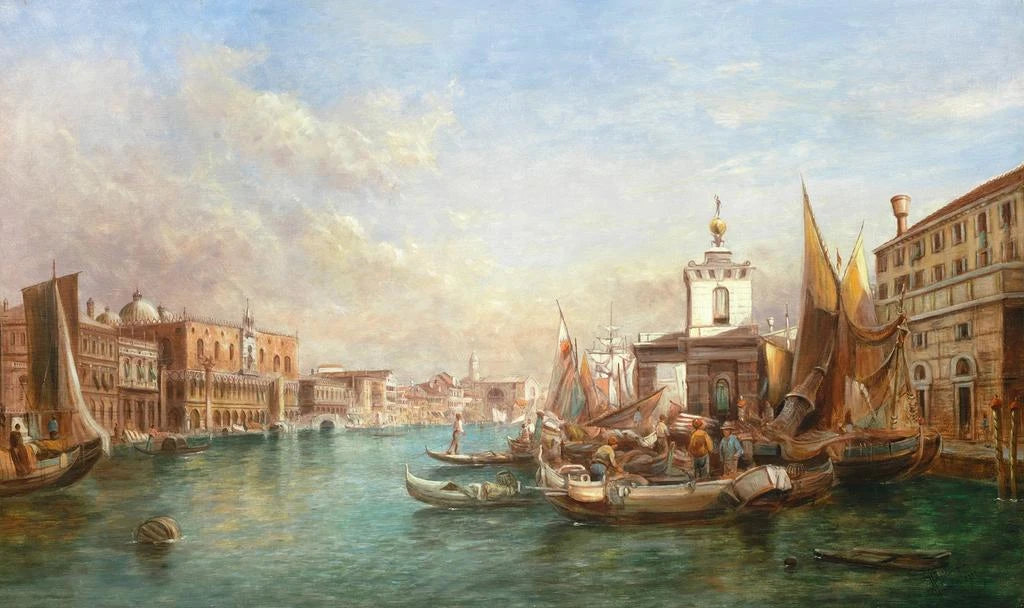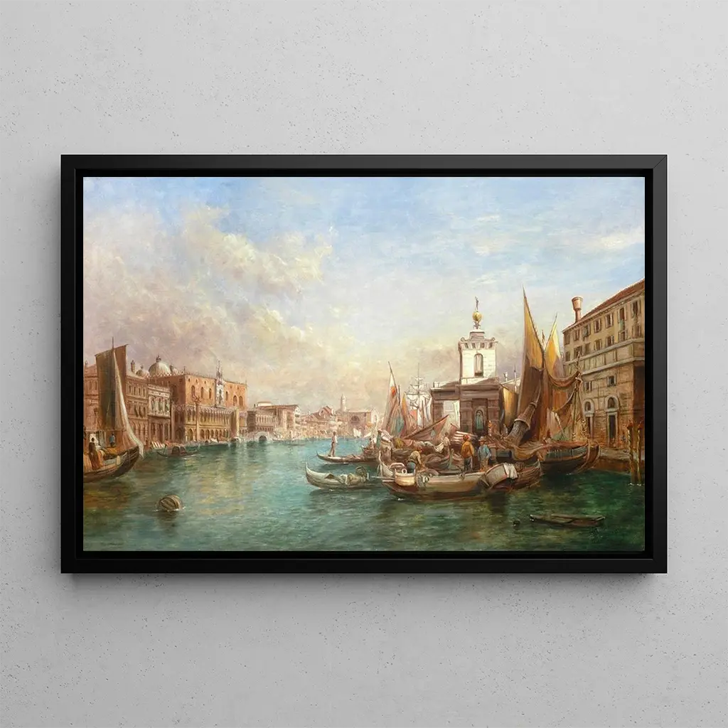 La Dogana : een levendige scène uit het Venetiaanse leven La Dogana, een iconisch werk van Alfred Pollentine, brengt de kijker naar het hart van Venetië, waar de levendigheid van de kades en de schoonheid van de gebouwen harmonieus samenkomen. De sprankelende kleuren, variërend van diepe blauwen tot warme okers, creëren een levendige en uitnodigende sfeer. De techniek van de kunstenaar, die delicate penseelstreken en minutieuze details gebruikt, brengt deze maritieme scène tot leven. De zeilen van de boten staan trots omhoog, terwijl de voorbijgangers druk in de weer zijn, allemaal verdiept in het dagelijks leven van een stad waar handel en kunst samenkomen. Alfred Pollentine : een meester van het Victoriaanse landschap Alfred Pollentine, actief in de tweede helft van de 19e eeuw, staat bekend om zijn Venetiaanse landschappen en genre scènes. Geïnspireerd door de prerafaëlieten, past hij binnen een artistieke traditie die de natuur en het licht waardeert. Zijn werken, vaak doordrenkt met romantiek, getuigen van een tijd waarin Engeland en Italië in volle culturele uitwisseling waren. Pollentine slaagde erin de essentie van Venetië vast te leggen, waardoor zijn schilderijen ramen worden naar een levendige en kleurrijke realiteit, terwijl ze een vleugje poëzie behouden. Een decoratief aanwinst met vele voordelen De kunstdruk van La Dogana is een ideale keuze om uw interieur te verfraaien, of het nu in een woonkamer, kantoor of slaapkamer is. De kwaliteit van de afdruk en de trouw aan het originele werk maken het een decoratief element dat de aandacht trekt en de nieuwsgierigheid wekt. Met zijn onmiskenbare esthetische aantrekkingskracht brengt dit schilderij een vleugje elegantie en cultuur in uw ruimte, terwijl het uitnodigt tot dromen en ontsnapping naar de betoverende kanalen van Venetië.