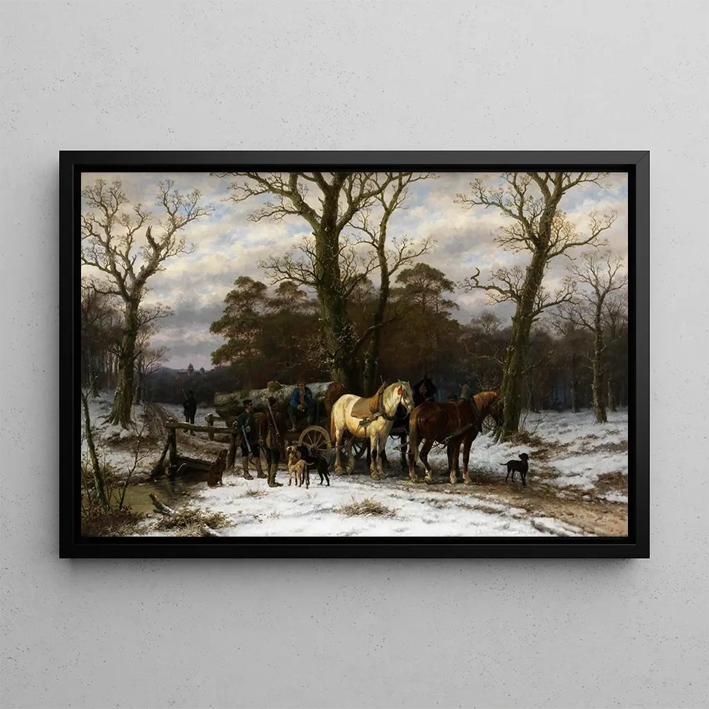 Les Marchands de bois : een levendige scène van menselijke activiteit In "Les Marchands de bois" straalt het werk van Caesar Bimmermann een bruisende sfeer uit, met warme kleuren en minutieuze details. Het schilderij beeldt een markt uit waar mannen zich bezighouden rond boomstammen, wat de vitaliteit van de bosbouwhandel illustreert. De aardetinten en het spel van licht creëren een sfeer die zowel realistisch als poëtisch is, en nodigen de kijker uit om onder te dompelen in deze wereld van arbeid. Bimmermanns techniek, die behendig realisme combineert met een vleugje impressionisme, brengt elk personage tot leven, waardoor het geheel boeiend en dynamisch wordt. Caesar Bimmermann : een getuige van zijn tijd Caesar Bimmermann, actief in de 19e eeuw, wordt vaak geassocieerd met de realistische beweging, die streeft naar het nauwkeurig weergeven van het dagelijks leven. Geïnspireerd door de grote meesters van zijn tijd, wist hij de essentie van een snel veranderende samenleving vast te leggen, gekenmerkt door industrialisatie. Zijn werk weerspiegelt de sociale en economische zorgen van zijn tijd, terwijl het het harde werk van mannen en vrouwen benadrukt. Bimmermanns schilderijen bieden een waardevol inzicht in het landelijke en stedelijke leven, waardoor hij een onmisbare kunstenaar van zijn tijd is. Een decoratief stuk met vele voordelen Kiezen voor een kunstdruk van "Les Marchands de bois" is een uitstekend idee om je interieur te verrijken. Of het nu in een woonkamer, kantoor of slaapkamer is, dit schilderij brengt een vleugje authenticiteit en warmte. De kwaliteit van de kunstdruk garandeert een nauwkeurige weergave van de originele details, zodat je van het werk in al zijn pracht kunt genieten. Met zijn onmiskenbare esthetische aantrekkingskracht wordt dit doek een blikvanger in je inrichting, die de bewondering van je gasten oproept en een gezellige en inspirerende sfeer creëert.