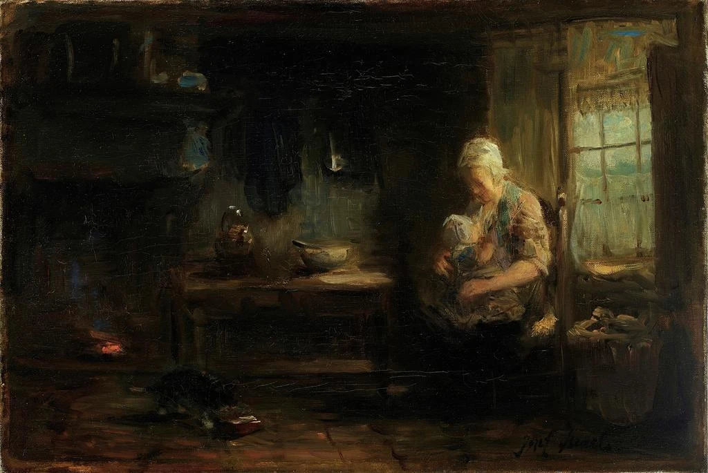 De jonge moeder : een eerbetoon aan moederlijke tederheid De jonge moeder is een ontroerend kunstwerk dat de essentie van het moederschap vastlegt met een zeldzame delicatessen. Het schilderij toont een moeder die haar kind in haar armen houdt, omgeven door een zachte lichtstraal die de tederheid van het moment benadrukt. De warme kleuren en de minutieuze details van de gezichten brengen een tastbare emotie over, waardoor een intieme en troostende sfeer ontstaat. Israëls, met zijn olieverftechniek, slaagt erin niet alleen de fysieke kenmerken vast te leggen, maar ook de liefde en de diepe verbinding tussen moeder en kind, waardoor dit kunstwerk een waar visueel gedicht wordt. Jozef Israëls : een kunstenaar van het Nederlandse realisme Jozef Israëls, geboren in 1824 in Nederland, is een belangrijke vertegenwoordiger van de realistische beweging. Geïnspireerd door de meesters van de Hollandse schilderkunst, heeft hij een stijl ontwikkeld die realisme en emotie combineert. Zijn werken, vaak gericht op thema's uit het dagelijks leven en menselijke relaties, getuigen van een diepe empathie voor zijn onderwerpen. De jonge moeder past binnen deze traditie, en benadrukt familiale waarden en de schoonheid van eenvoudige momenten. Israëls was ook een pionier in het gebruik van licht om gevoelens op te roepen, wat deze doek tot een emblematisch stuk van zijn oeuvre maakt. Een decoratieve aanwinst met vele voordelen De kunstdruk van De jonge moeder is een decoratieve keuze die warmte en emotie aan uw interieur toevoegt. Of het nu in een woonkamer, een kinderkamer of een kantoor is, deze doek zal een zachte en gastvrije sfeer creëren. De kwaliteit van de afdruk en de trouw aan de originele details maken het een waardevolle aanvulling op elke kunstcollectie. Door voor dit werk te kiezen, geeft u uw ruimte een vleugje menselijkheid en tederheid, terwijl u de schoonheid van familiale banden viert. Het is een stuk dat ongetwijfeld de aandacht zal trekken en gesprekken over kunst en het leven zal inspireren.