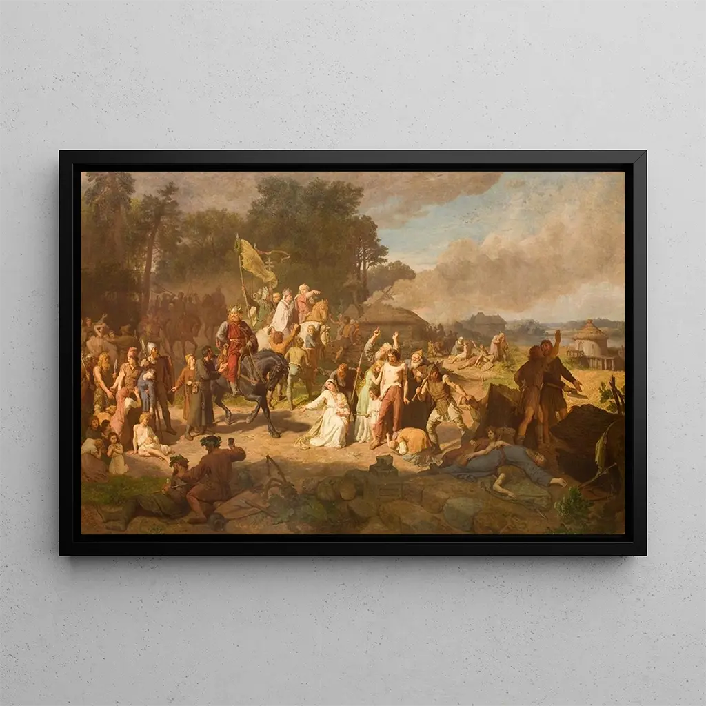 De Poolse kunstenaar Wojciech Gerson uit de 19e eeuw wordt erkend om zijn inzet om historische en sociale scènes weer te geven. Geïnspireerd door het romantisme, richt hij zich op menselijke strijd en verhalen uit het dagelijks leven. Zijn carrière wordt gekenmerkt door een wens om de realiteit van zijn tijd te documenteren, onder andere door werken die lijden en hoop oproepen. "De beklagenswaardige apostolische missie" past in deze lijn, en weerspiegelt de spanningen van de periode en de impact van religieuze missies op de lokale bevolking.