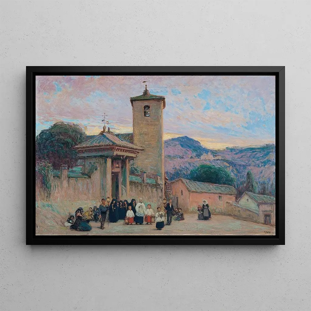 Le viatique, Tolède : een evocatie van de spirituele reis De kunstdruk Le viatique, Tolède, brengt ons naar een scène doordrenkt met mysterie en sereniteit. Dit schilderij, rijk aan details, vangt de essentie van een overgangsmoment, waarin de spirituele en fysieke reis samenvloeien. De warme, aardse kleuren, gecombineerd met delicate schaduwen, creëren een contemplatieve sfeer. De kunstenaar slaagt erin om een diepe emotie over te brengen door middel van de uitdrukkingen van de personages, en nodigt de kijker uit om na te denken over de betekenis van de reis en het geloof. Dit werk is een ware uitnodiging tot meditatie, waarbij elke blik een nieuwe nuance van de menselijke ervaring onthult. Gonzalo Bilbao Martínez : een kunstenaar met een hart voor het Spaanse symbolisme Gonzalo Bilbao Martínez, Spaanse schilder uit het begin van de 20e eeuw, wordt erkend om zijn symbolistische stijl die traditie en moderniteit combineert. Geïnspireerd door de artistieke stromingen van zijn tijd, wist hij werken te creëren die spreken over de menselijke ziel en haar strijd. De kunstdruk Le viatique, Tolède, past in een context waarin Spanje probeert zijn artistieke identiteit opnieuw te definiëren na eeuwen van traditie. Bilbao Martínez heeft met zijn unieke aanpak bijgedragen aan deze renaissance, door spirituele thema's en narratieve elementen te gebruiken om de verbeelding van het publiek te vangen. Zijn werk blijft een referentie in de Spaanse kunst. Een decoratief stuk met vele voordelen De kunstdruk Le viatique, Tolède, is een decoratief stuk dat elke leefruimte verrijkt. Of het nu in een woonkamer, wachtkamer of kantoor is, dit schilderij brengt een vleugje cultuur en reflectie. De kwaliteit van de afdruk garandeert een opmerkelijke fideliteit aan de details en kleuren van het originele werk, terwijl het ook een aangename duurzaamheid biedt. Door deze doek in uw inrichting te integreren, creëert u een inspirerende en rustgevende omgeving, geschikt voor contemplatie en discussie. Het is een ideale keuze voor wie esthetiek en spirituele diepgang wil combineren.