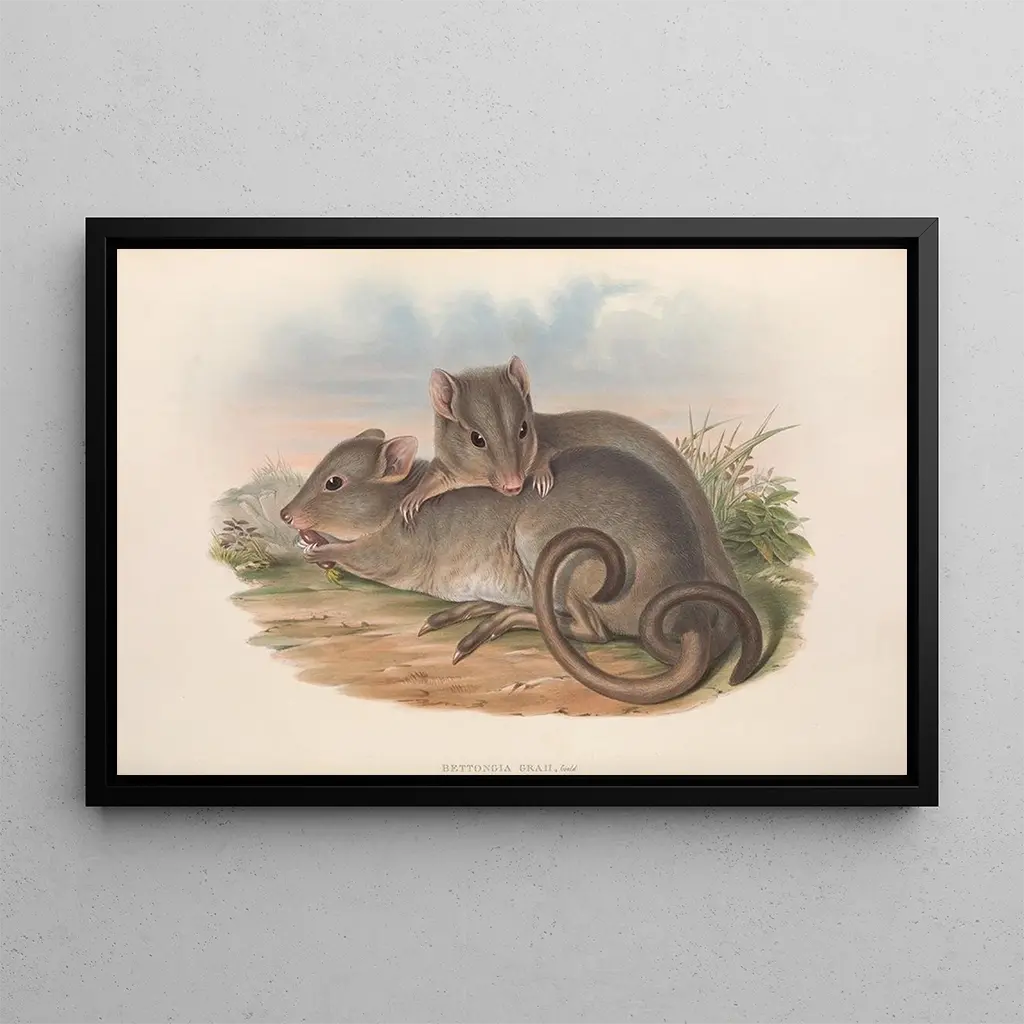 Les mammifères d'Australie Pl100 : een reis door het hart van de Australische fauna In deze levendige kunstdruk, Les mammifères d'Australie Pl100, brengt John Gould ons naar een wereld waar de natuur zich uitdrukt met éclat. De minutieuze details van de dieren, gecombineerd met rijke en gevarieerde kleuren, creëren een sfeer die zowel levendig als rustgevend is. Elk element van de compositie, van de texturen van de vachten tot de nuances van de landschappen, nodigt uit tot een aandachtige verkenning van de unieke biodiversiteit van dit continent. De graveertechniek die Gould gebruikt, geeft het werk een bijna tastbare kwaliteit en eert de wilde schoonheid van de afgebeelde soorten. John Gould : pionier in de ornithologie en de zoölogie John Gould, Britse naturalist en illustrator uit de 19e eeuw, wordt erkend voor zijn belangrijke bijdragen aan de studie van de fauna. Zijn werk past binnen de Victoriaanse beweging, waar wetenschappelijke exploratie en kunst samenkomen. Geïnspireerd door de reizen van Charles Darwin, heeft Gould zijn leven gewijd aan het documenteren van diersoorten, vooral in Australië. Zijn illustraties, vaak beschouwd als kunstwerken op zich, hebben een cruciale rol gespeeld in het vergroten van het bewustzijn over het behoud van de fauna. Gould wist de essentie van elke soort vast te leggen, waardoor zijn kunstdrukken onschatbaar zijn voor kunstliefhebbers en wetenschappers. Een decoratieve aankoop met vele voordelen De kunstdruk van het schilderij Les mammifères d'Australie Pl100 is een decoratief stuk dat harmonieus integreert in diverse ruimtes, of het nu een woonkamer, kantoor of slaapkamer is. De kwaliteit van de afdruk en de trouw aan de originele details maken het een ideale keuze voor wie een vleugje elegantie en cultuur aan hun interieur wil toevoegen. Met zijn onmiskenbare esthetische aantrekkingskracht trekt dit doek de aandacht en stimuleert het gesprekken, terwijl het een exotisch en nieuwsgierig tintje geeft. Gun jezelf dit iconische werk om je decor te verrijken en de schoonheid van de natuur te vieren.
