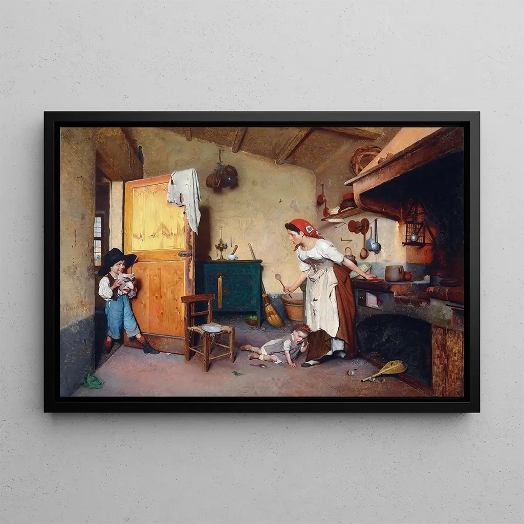 La Maschera : een reis in de verbeelding De kunstdruk van La Maschera dompelt ons onder in een mysterieuze en fascinerende wereld, waar maskers oude verhalen en levendige tradities oproepen. Gaetano Chierici, met zijn palet van rijke kleuren en minutieuze details, slaagt erin de essentie van het carnaval en zijn vieringen vast te leggen. De gemaskerde gezichten, met diverse uitdrukkingen, lijken verhalen te vertellen van vreugde, mysterie en feest. Dit doek, vol leven, nodigt de kijker uit om de verborgen emoties achter elk masker te verkennen, waardoor dit werk een ware afspiegeling is van de menselijke ziel. Gaetano Chierici: de kunstenaar van Italiaanse tradities Gaetano Chierici, Italiaanse schilder uit de 19e eeuw, is vooral bekend om zijn voorstellingen van genre scènes en volks tradities. Zijn werk past binnen een artistieke beweging die het culturele erfgoed en de volksgebruiken van Italië waardeert. Geïnspireerd door het romantisme, wist Chierici realisme en verbeelding te combineren, en creëerde hij composities die de geest van zijn tijd vastleggen. De kunstdruk van La Maschera is emblematisch voor zijn stijl, waarin realistische details en dromerige sfeer samenkomen, en getuigt van zijn interesse in rituelen en vieringen van het dagelijks leven. Een decoratief stuk met vele voordelen De kunstdruk van La Maschera is een ideale decoratieve keuze om een vleugje originaliteit aan uw interieur toe te voegen. Of het nu in een woonkamer, kantoor of slaapkamer is, dit schilderij trekt de aandacht en wekt nieuwsgierigheid. De afdrukkwaliteit garandeert een perfecte trouw aan de kleuren en details van het originele werk, wat zorgt voor een duurzame esthetische aantrekkingskracht. Door deze doek in uw inrichting te integreren, geeft u uw ruimte een feestelijke en intrigerende sfeer, terwijl u het artistieke erfgoed van Gaetano Chierici eert. Dit werk is veel meer dan een eenvoudig decoratief element; het is een uitnodiging om de wereld van tradities en menselijke emoties te verkennen.