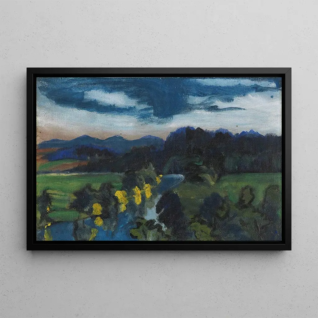 La Mulde près de Lichtenwalde : een levendig landschap vol kleuren La Mulde près de Lichtenwalde is een boeiende kunstdruk die een sfeer oproept die zowel rustgevend als dynamisch is. Kirchner, die gebruikmaakt van felle kleuren en gedurfde penseelstreken, slaagt erin de energie van de omringende natuur over te brengen. Het schilderij toont een rivierlandschap waar het licht op het water speelt en sprankelende reflecties creëert. De bomen, gestileerd en bijna abstract, lijken te dansen op de wind, terwijl de hemel, in een stralend blauw, uitnodigt tot dagdromen. Deze kunstdruk van La Mulde près de Lichtenwalde is een ware uitnodiging tot het bewonderen van de natuurlijke schoonheid. Ernst Ludwig Kirchner : een pionier van het expressionisme Ernst Ludwig Kirchner, een iconische figuur van het Duitse expressionisme, markeerde het begin van de 20e eeuw met zijn gedurfde benadering van kleur en vorm. Geboren in 1880, vestigde hij zich snel als een belangrijke kunstenaar, beïnvloed door het fauvisme en het kubisme. Kirchner was medeoprichter van de groep Die Brücke, die probeerde diepe emoties uit te drukken via kunst. Zijn werken, vaak geïnspireerd door het stadsleven en de natuur, weerspiegelen een zoektocht naar authenticiteit en vrijheid. La Mulde près de Lichtenwalde, gemaakt in 1912, illustreert perfect zijn unieke stijl en zijn inzet voor een emotionele weergave van de wereld. Een decoratief kunstdruk met vele voordelen Kiezen voor een kunstdruk van La Mulde près de Lichtenwalde betekent kiezen voor een doek die een vleugje kleur en leven aan uw interieur toevoegt. Of het nu in een woonkamer, kantoor of slaapkamer is, dit schilderij past harmonieus bij diverse decoratiestijlen. De kwaliteit van de afdruk garandeert een trouwheid aan de originele nuances, zodat u van het kunstwerk in al zijn pracht kunt genieten. Met zijn onmiskenbare esthetische aantrekkingskracht wordt deze kunstdruk een blikvanger die bewondering en nieuwsgierigheid wekt bij uw gasten, terwijl het een artistieke dimensie aan uw ruimte toevoegt.