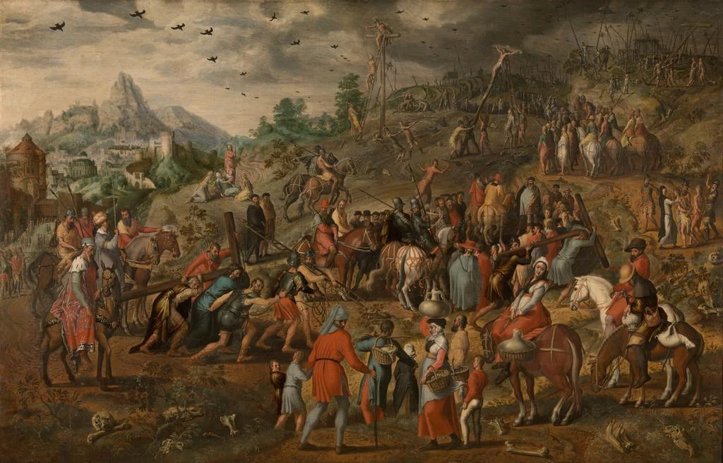 La peinture "Le Portement de croix" de Pieter Aertsen dépeint une scène chargée d’émotion, où la souffrance du Christ est mise en avant par des couleurs sombres et des contrastes saisissants. La composition est dynamique, avec des personnages en mouvement qui semblent porter le poids du monde sur leurs épaules. Les détails minutieux des visages et des vêtements ajoutent une profondeur psychologique à l'œuvre, tandis que l'arrière-plan, bien que flou, évoque une atmosphère de désespoir. Aertsen parvient à capturer l’intensité de ce moment tragique, invitant le spectateur à une réflexion sur la souffrance et la rédemption.