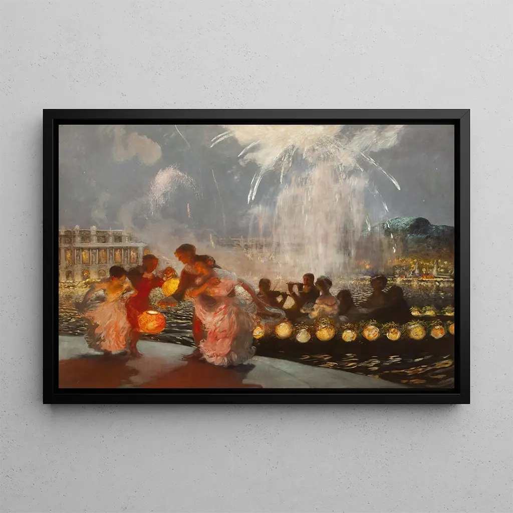 La fête joyeuse : een viering van het leven en de kleuren De vrolijke feestelijkheid van Gaston La Touche is een levendig kunstwerk dat vreugde en zorgeloosheid oproept. De personages, ondergedompeld in een feestelijke sfeer, lijken te dansen op het ritme van een onzichtbare melodie. De heldere kleuren, variërend van diepe roodtinten tot heldere geeltonen, mengen harmonieus, waardoor een gevoel van beweging en vreugde ontstaat. De impressionistische techniek van La Touche, met zijn dynamische penseelstreken, brengt deze scène tot leven en stelt de kijker in staat de energie van het feest te voelen. Het werk nodigt uit tot contemplatie, waarbij elk detail een verhaal vertelt en het licht een essentiële rol speelt in de opvoering van deze vreugde. Gaston La Touche : een meester van het Franse impressionisme Gaston La Touche, geboren in 1854, is een iconisch kunstenaar van het Franse impressionisme. Geïnspireerd door meesters zoals Monet en Renoir, ontwikkelde hij een unieke stijl, gekenmerkt door scènes uit het dagelijks leven en landelijke landschappen. La Touche was ook een actief lid van de Nabis-beweging, waarbij hij symbolistische elementen in zijn werk verwerkte. Zijn werk, hoewel minder bekend dan dat van zijn tijdgenoten, heeft zijn tijd gekenmerkt door zijn vermogen om licht en emotie vast te leggen. De vrolijke feestelijkheid is een perfect voorbeeld van zijn talent, dat het belang van vreugde en harmonie in het menselijk leven illustreert. Een decoratief stuk met vele voordelen De kunstdruk van De vrolijke feestelijkheid is een decoratief stuk dat elk interieur kan verfraaien, of het nu een woonkamer, kantoor of slaapkamer is. De afdrukkwaliteit garandeert een opmerkelijke trouw aan de kleuren en details van het originele werk, waardoor je volop kunt genieten van de feestelijke sfeer die het uitstraalt. Door dit schilderij in je inrichting te integreren, voeg je een vleugje elegantie en dynamiek toe aan je ruimte. De esthetische aantrekkingskracht van dit doek maakt het een ideale keuze voor wie een warme en gastvrije sfeer wil creëren, terwijl ze het impressionistische kunst vieren.