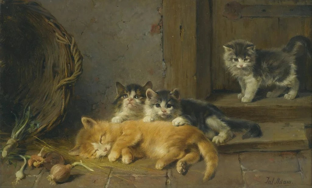 Julius Adam de Oudere, een Duitse schilder actief in de 19e eeuw, wordt erkend om zijn vaardigheid om alledaagse scènes met een bijzondere gevoeligheid weer te geven. Geïnspireerd door de romantische beweging, specialiseerde hij zich in intieme onderwerpen, vaak gericht op de menselijke figuur. Zijn werk weerspiegelt een periode waarin de kunst zich richtte op meer persoonlijke en emotionele thema's, weg van de klassieke idealen. Adam wist momenten van het leven vast te leggen die doordrenkt zijn van poëzie, wat hem een belangrijke plaats gaf in het artistieke landschap van zijn tijd, onder andere door werken zoals "De wekker".
