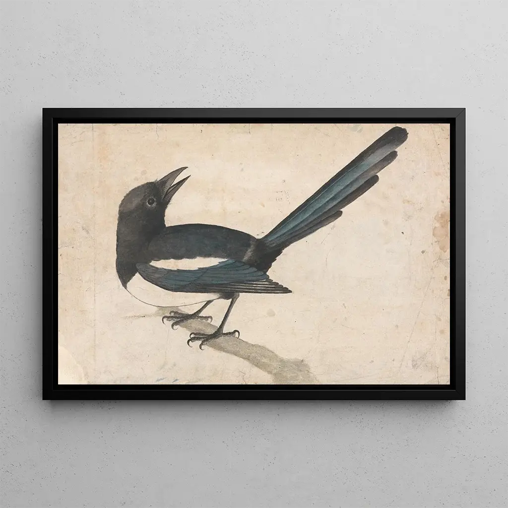 Une Pie : een bevroren moment in de natuur De kunstdruk Une Pie van John Bewick vangt een vluchtig moment in de natuur, waar schoonheid en eenvoud samenkomen. Dit werk, uitgevoerd met opmerkelijke precisie, benadrukt een ekster, symbool van nieuwsgierigheid en intelligentie. De delicate kleuren, variërend van nuances van zwart en wit tot blauwe accenten van de hemel, creëren een rustgevende en contemplatieve sfeer. De houtsnede-techniek die Bewick gebruikt, geeft deze doek een unieke textuur en nodigt de kijker uit om dichterbij te komen en de minutieuze details van de vogel en zijn omgeving te waarderen. John Bewick: een meester van de Engelse gravure John Bewick, actief in het begin van de 19e eeuw, wordt erkend als een van de pioniers van de houtsnede in Engeland. Geïnspireerd door pittoreske landschappen en de fauna van zijn tijd, wist hij kunst en natuur te combineren met een bijzondere gevoeligheid. Zijn werk markeerde een overgang naar een meer realistische weergave van dieren en landschappen, en onderscheidde zich van de meer gestileerde conventies van zijn voorgangers. Bewick speelde ook een belangrijke rol in de illustratie van boeken, wat bijdroeg aan de verspreiding van kunst onder een breder publiek, en zijn nalatenschap leeft voort in zijn iconische werken. Een decoratief stuk met vele voordelen De kunstdruk van de schilderij Een Pie is een ideaal decoratief stuk voor diverse ruimtes, of het nu in een woonkamer, kantoor of slaapkamer is. De kwaliteit van de afdruk en de trouw aan het originele werk maken het een aantrekkelijke keuze voor kunstliefhebbers en natuurliefhebbers. Met zijn rustgevende esthetiek en boodschap over de schoonheid van de fauna brengt deze doek een vleugje elegantie en sereniteit in uw interieur. Het werk van Bewick, via deze kunstdruk, nodigt uit tot contemplatie en verwondering, en verrijkt zo uw decoratie.