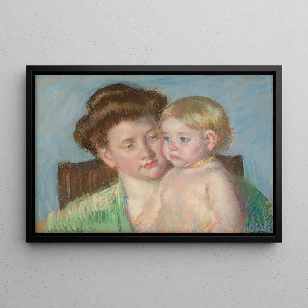Moeder en kind: een schilderij doordrenkt met tederheid In dit iconische werk vangt Mary Cassatt de delicatessen van een intiem moment tussen een moeder en haar kind. De zachte kleuren, gedomineerd door pasteltonen, creëren een warme en rustgevende sfeer. De impressionistische techniek van Cassatt, met haar vloeiende penseelstreken, brengt de personages tot leven terwijl ze een zekere intimiteit behoudt. De speelse blik tussen moeder en kind roept een diepe connectie op en nodigt de kijker uit om zich in dit affectieve cocon te verdiepen. Deze kunstdruk van Moeder en kind is een ware ode aan het moederschap, die de schoonheid van familiebanden viert. Mary Cassatt: pionier van de vrouwelijke impressionisme Mary Cassatt, Amerikaanse kunstenares uit de 19e eeuw, is een van de belangrijkste figuren van het impressionisme. Geïnspireerd door Edgar Degas, ontwikkelde ze een unieke stijl die het dagelijks leven van vrouwen en kinderen benadrukt. Cassatt bracht een groot deel van haar leven door in Frankrijk, waar ze contact had met de grote meesters van haar tijd. Haar werk was essentieel om vrouwen erkenning te geven in de kunstwereld, en ze speelde een sleutelrol in de promotie van het impressionisme in de Verenigde Staten. De kunstdruk van Moeder en kind getuigt van haar inzet om vrouwelijkheid op een nieuwe en ontroerende manier te presenteren. Een decoratief stuk met vele voordelen De kunstdruk van Moeder en kind is een ideale keuze om je interieur te verfraaien, of het nu in een woonkamer, kantoor of slaapkamer is. De afdrukkwaliteit garandeert een opmerkelijke trouw aan de kleuren en details van het originele werk, zodat je kunt genieten van de volledige rijkdom van Cassatt’s creatie. Met zijn esthetische aantrekkingskracht brengt dit schilderij een vleugje zachtheid en sereniteit in je decoratie. Door deze doek in je ruimte te integreren, nodig je niet alleen kunst uit in je dagelijks leven, maar creëer je ook een warme en gastvrije sfeer.