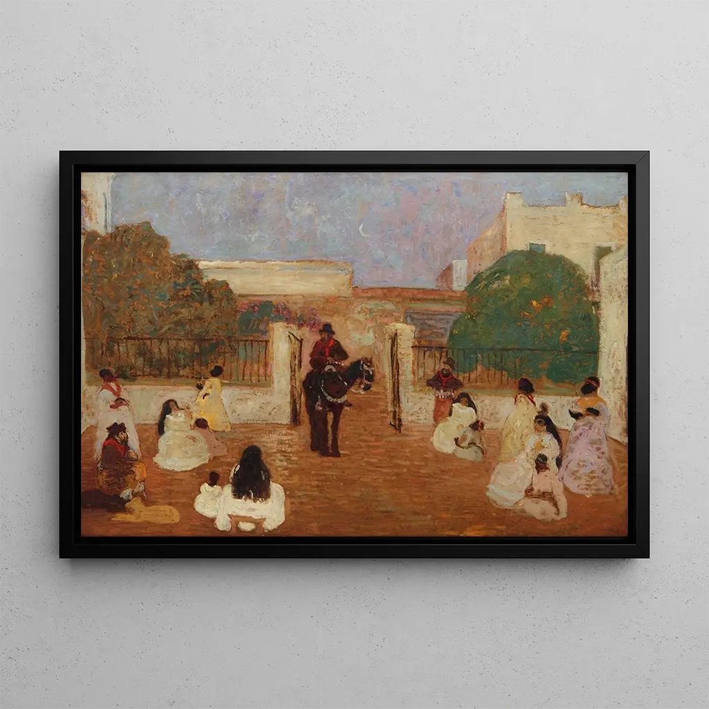 El Gaucho Candioti : een levendig eerbetoon aan de Argentijnse cultuur De kunstdruk "El Gaucho Candioti" van Pedro Figari dompelt ons onder in de kleurrijke en levendige wereld van de Argentijnse cultuur. Dit schilderij, rijk aan felle kleuren en dynamische patronen, beeldt een gaucho af, een iconische figuur van Argentinië, in een trotse en majesteitelijke houding. Figari gebruikt warme tinten en gestileerde vormen om de energie en passie van het landelijke leven vast te leggen. De techniek van de kunstenaar, die impressionisme en expressionisme combineert, creëert een levendige en boeiende sfeer, die de kijker uitnodigt de kracht en schoonheid van deze cultuur te voelen. Pedro Figari : een pionier van de moderne Argentijnse kunst Pedro Figari, geboren in 1861, is een Argentijnse kunstenaar wiens werk een sleutelrol heeft gespeeld in de ontwikkeling van de moderne kunst in Argentinië. Geïnspireerd door folkloristische tradities en landschappen van zijn land, wist Figari elementen van de populaire cultuur in zijn creaties te integreren. Zijn unieke stijl, die Europese en lokale invloeden combineert, heeft bijgedragen aan het vormen van een eigen artistieke identiteit voor Argentinië. "El Gaucho Candioti" is een perfect voorbeeld van zijn inzet om het dagelijks leven en de tradities van zijn land te vertegenwoordigen, terwijl hij een moderne toets aan zijn composities toevoegt. Een decoratief kunstdruk met vele voordelen De kunstdruk van "El Gaucho Candioti" is een ideale keuze om je interieur te verrijken. Of het nu in een woonkamer, kantoor of eetkamer is, dit doek brengt een gevoel van authenticiteit en karakter. De afdrukkwaliteit garandeert een opmerkelijke trouw aan de kleuren en details van het originele werk, terwijl het een onmiskenbare esthetische aantrekkingskracht biedt. Door deze kunstdruk in je ruimte te integreren, creëer je een warme en gastvrije sfeer, terwijl je de rijkdom van de Argentijnse cultuur viert. Laat je verleiden door dit iconische kunstwerk en transformeer je interieur in een waar eerbetoon aan kunst en traditie.