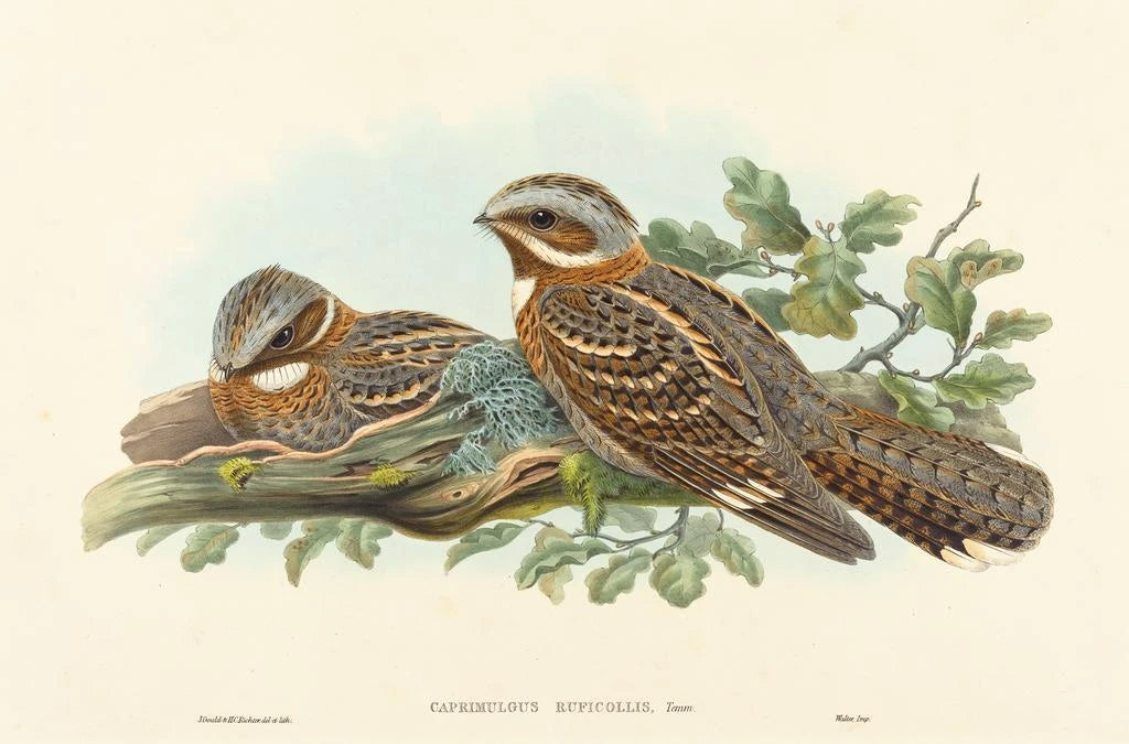 John Gould, beroemde ornitholoog en illustrator uit de 19e eeuw, speelde een cruciale rol in de documentatie van vogelsoorten over de hele wereld. Zijn werk, vaak beschouwd als een samensmelting van wetenschap en kunst, heeft bijgedragen aan de bekendheid van de vogelrijkdom in vele regio's. Gould reisde naar verre landen, geïnspireerd door de diversiteit van de vogels die hij ontmoette. De kunstdruk van Engoulvent à collier roux is een perfect voorbeeld van zijn nauwgezette aanpak en zijn inzet voor een nauwkeurige weergave van de fauna, waarmee hij zijn stempel heeft gedrukt op de geschiedenis van de naturalistische kunst.