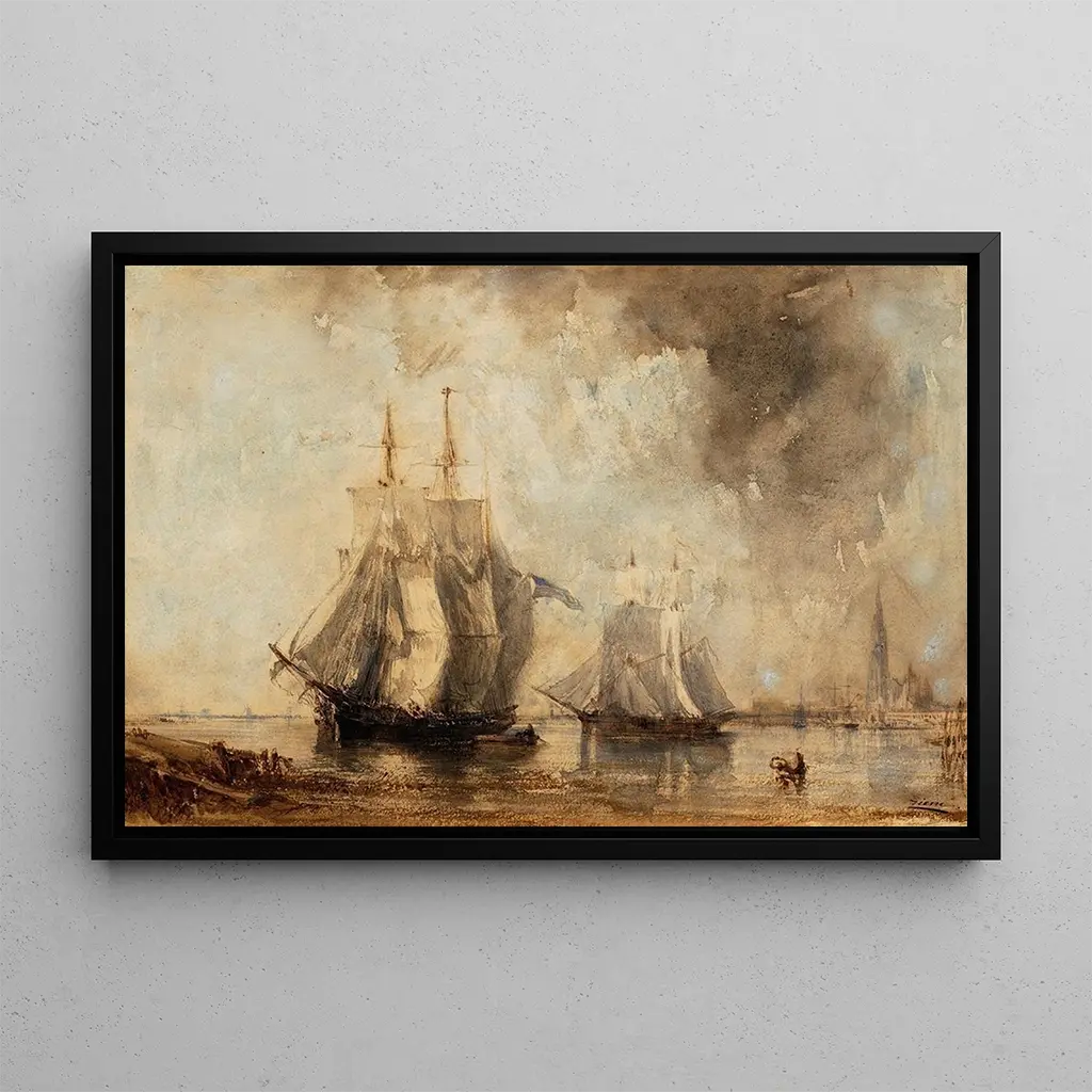 L'Escaut Anvers : een symfonie van licht en beweging De kunstdruk "L'Escaut Anvers" van Félix Ziem brengt ons naar het hart van een levendig maritiem landschap. De nuances van blauw en groen mengen harmonieus, terwijl de reflecties van de hemel in het water een bijna dromerige sfeer creëren. De techniek van Ziem, gekenmerkt door vloeiende penseelstreken en een stralend licht, brengt deze haven scène tot leven. De majestueuze zeilboten lijken te dansen op de golven, terwijl de gebouwen van Antwerpen elegant op de achtergrond oprijzen. Dit doek nodigt uit tot contemplatie en vangt de essentie van het maritieme leven in de 19e eeuw. Félix Ziem : een meester van het romantische landschap Félix Ziem, geboren in 1821, is een Franse schilder die bekend staat om zijn maritieme en stedelijke landschappen. Geïnspireerd door de romantische beweging, wist hij de schoonheid van de plaatsen die hij bezocht vast te leggen, waaronder Venetië en de Franse kusten. Zijn stijl onderscheidt zich door een gedurfde toepassing van kleur en licht, kenmerkend voor het opkomende impressionisme. Ziem was ook een pionier in het verkennen van atmosferische effecten, wat hem heeft geholpen naam te maken in de kunstwereld. "L'Escaut Anvers" is een perfect voorbeeld van zijn talent, dat zijn verbondenheid met de natuur en het stedelijke leven illustreert. Een decoratief kunstwerk met vele voordelen De kunstdruk van "L'Escaut Anvers" is een ideale keuze om uw interieur te verfraaien, of het nu in een woonkamer, kantoor of slaapkamer is. De afdrukkwaliteit en trouw aan het originele kunstwerk maken er een boeiend schilderij van dat de aandacht trekt. De rustgevende tinten en de dynamiek van de scène brengen een vleugje sereniteit in uw ruimte. Door te kiezen voor dit doek voegt u niet alleen een kunstwerk toe, maar ook een uitnodiging tot dromen en ontsnapping, waardoor uw decoratie verandert in een ware visuele reis.
