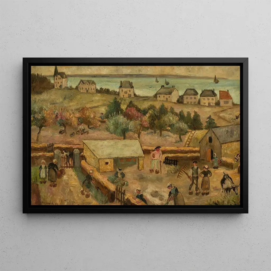 Ferme à Keranquernat : een idyllisch schilderij doordrenkt met sereniteit De kunstdruk van de Ferme à Keranquernat nodigt uit tot een reis door een landelijk landschap vol rust. De zachte, aardse tinten mengen harmonieus, waardoor een rustgevende sfeer ontstaat. De techniek van Tadeusz Makowski, die realisme combineert met een vleugje impressionisme, laat je de warmte van de zon op de velden en het gefluister van de wind in de bomen voelen. Elk detail, van de stenen gebouwen tot de nuances van de velden, roept een eenvoudig en authentiek leven op, waarin natuur en mens in perfecte harmonie samenleven. Tadeusz Makowski : een kunstenaar tussen traditie en moderniteit Tadeusz Makowski, geboren in Polen in 1882, wist zich te onderscheiden in de kunstwereld dankzij zijn unieke stijl die traditie en moderniteit combineert. Geïnspireerd door de post-impressionistische beweging, ontwikkelde hij een persoonlijke aanpak die zich onderscheidt door het gebruik van levendige kleuren en gestileerde vormen. Gevestigd in Frankrijk, wist hij de essentie van het landelijke leven vast te leggen, terwijl hij elementen van zijn Poolse erfgoed integreerde. Zijn werk, hoewel minder bekend dan dat van zijn tijdgenoten, getuigt van een diepe gevoeligheid voor de natuur en de landschappen die hem omringen. Een decoratief stuk met vele voordelen De kunstdruk van de Ferme à Keranquernat vormt een ideaal decoratief stuk voor diverse ruimtes, of het nu in een gezellige woonkamer, een inspirerend kantoor of een rustgevende slaapkamer is. De afdrukkwaliteit garandeert een opmerkelijke trouw aan de kleuren en details van het originele werk, terwijl het een vleugje elegantie toevoegt aan je interieur. Met zijn onmiskenbare esthetische aantrekkingskracht zal deze kunstdruk liefhebbers van kunst en natuurliefhebbers aanspreken, en een serene en gastvrije sfeer creëren in je leefruimte.
