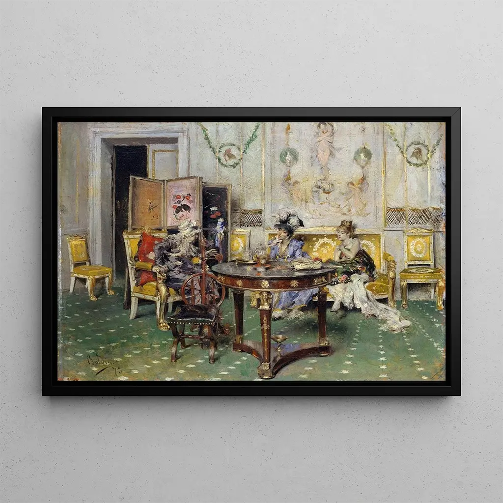 De kunstdruk van "Commérages" is een ideale keuze om je interieur te verrijken. Of het nu in een woonkamer, kantoor of slaapkamer is, dit schilderij brengt een vleugje verfijning en dynamiek. De kwaliteit van de reproductie garandeert een trouwheid aan de details en kleuren van het originele werk, zodat je kunt genieten van de kunst van Boldini in je leefruimte. De esthetische aantrekkingskracht van dit doek zal ongetwijfeld de bewondering van je gasten wekken, terwijl het een warme en uitnodigende sfeer creëert.