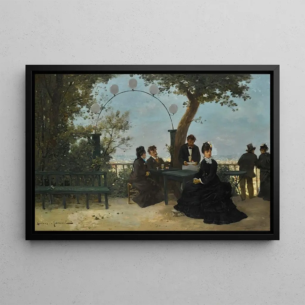 De kunstdruk van "Het middageten op het terras" is een ideale decoratieve keuze om een vleugje warmte aan uw interieur toe te voegen. Of het nu in een woonkamer, eetkamer of werkruimte is, dit kunstdruk roept een gezellige en gastvrije sfeer op. De reproduktie garandeert een trouwheid aan de kleuren en details van het originele werk, waardoor u volop kunt genieten van de kunst van Maincent. Door deze doek in uw inrichting te integreren, creëert u een ruimte waar het goed toeven is, terwijl u de kunst en de schoonheid van gedeelde momenten viert.