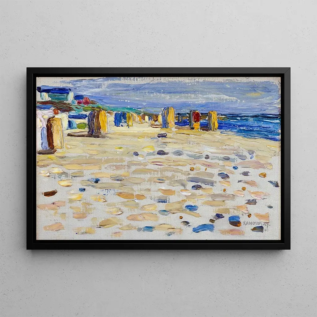 Hollande Strandkörbe : een harmonie van vormen en kleuren In dit levendige kunstwerk brengt Wassily Kandinsky ons naar de stranden van Nederland, waar de beroemde strandstoelen, de strandkörbe, als kleurrijke sculpturen oprijzen. De geometrische vormen verweven zich in een dynamische dans, terwijl de heldere kleuren vreugde en de lichtheid van de zomer oproepen. De olieverftechniek op doek stelt Kandinsky in staat om diepte en textuur te verkennen, waardoor een sfeer ontstaat die zowel rustgevend als stimulerend is. Elke penseelstreek lijkt de beweging van de wind en het geruis van de golven vast te leggen, en nodigt de kijker uit om zich onder te dompelen in deze zomerse scène. Wassily Kandinsky : pionier van abstractie en kleur Geboren in 1866, wordt Wassily Kandinsky vaak beschouwd als een van de grondleggers van de abstracte kunst. Geïnspireerd door de expressionistische beweging en de theorieën over kleur, probeerde hij emoties uit te drukken door middel van vormen en tinten. Zijn werk ontwikkelt zich door de jaren heen, van figuratieve voorstellingen naar volledig abstracte composities. Kandinsky was ook een sleutellid van het Bauhaus, waar hij lesgaf en zijn vernieuwende ideeën over kunst en design deelde. De kunstdruk van 'Hollandse Strandkörbe' getuigt van zijn creatieve genialiteit en zijn vermogen om gewone scènes om te toveren tot buitengewone visuele ervaringen. Een decoratief kunstdruk met vele voordelen De kunstdruk van 'Hollandse Strandkörbe' is een ideale keuze om uw interieur te verfraaien, of het nu in een woonkamer, kantoor of slaapkamer is. Zijn moderne en kleurrijke stijl brengt een frisse en dynamische uitstraling aan elke ruimte. De kwaliteit van de afdruk garandeert een opmerkelijke trouw aan de kleuren en details van het originele kunstwerk, waardoor deze doek een echt decoratief accent is. Door dit kunstwerk aan uw collectie toe te voegen, brengt u niet alleen kunst in uw dagelijks leven, maar creëert u ook een boeiend gespreksonderwerp voor uw gasten.