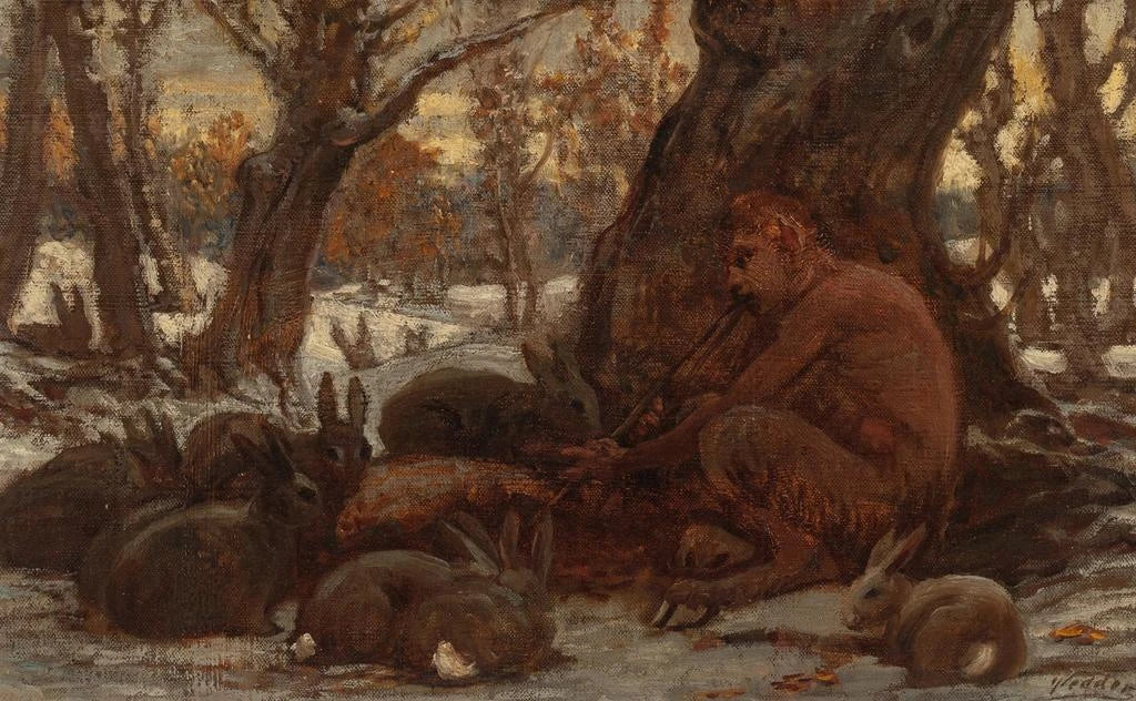 Jonge Marsyas die de hazen betovert - Elihu Vedder