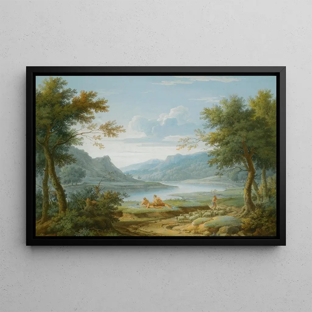 Klassiek landschap: een harmonie tussen natuur en sereniteit Het schilderij Klassiek landschap van George Lambert roept een idyllisch tafereel op waarin de natuur in al haar pracht ontvouwt. Dit werk, rijk aan details, toont een vredig landschap waar groene heuvels samenvloeien met een heldere hemel, en zo een sfeer van rust en harmonie creëren. De zachte kleuren en delicate nuances getuigen van Lambert's meesterschap in het gebruik van licht en schaduw. De evenwichtige compositie nodigt uit tot contemplatie, waardoor de kijker kan ontsnappen aan de werkelijkheid in deze sereen universum. De kunstdruk van dit schilderij is een ware viering van natuurlijke schoonheid. George Lambert: een pionier van het Engelse landschap George Lambert, actief in de achttiende eeuw, wordt erkend als een van de eerste Engelse landschapschilders die zich onderscheidde door zijn unieke stijl. Geïnspireerd door de romantische beweging, wist hij de schoonheid van Britse landschappen vast te leggen met een bijzondere gevoeligheid. Zijn werken, vaak doordrenkt van poëzie, weerspiegelen een diep respect voor de natuur en een zoektocht naar harmonie. Klassiek landschap, gemaakt tijdens zijn rijpingsperiode, belichaamt perfect zijn artistieke benadering, die realisme en idealisering combineert. Lambert heeft zo een blijvende erfenis achtergelaten in het veld van de landschapsschilderkunst. Een decoratief kunstdruk met vele voordelen De kunstdruk van het schilderij Klassiek landschap is een perfecte keuze om je interieur te verrijken, of het nu in een woonkamer, kantoor of slaapkamer is. De afdrukkwaliteit garandeert een uitzonderlijke fideliteit aan de details en kleuren van het originele werk, en brengt een vleugje sereniteit in je ruimte. Dit doek, met zijn onmiskenbare esthetische aantrekkingskracht, wordt een blikvanger die de aandacht trekt en bewondering oproept. Door voor dit werk te kiezen, voeg je niet alleen een decoratief element toe, maar integreer je ook een stukje geschiedenis en tijdloze schoonheid in je dagelijks leven.