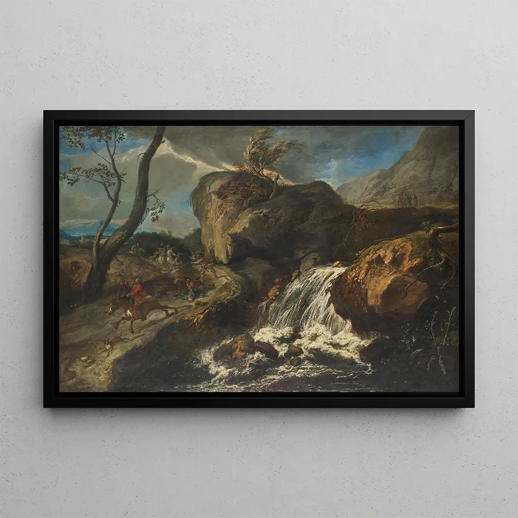 Paysage avec embuscade : een boeiende scène uit de natuur Dit schilderij, getiteld "Paysage avec embuscade", dompelt ons onder in een levendige voorstelling van een wilde en mysterieuze natuur. De rijke, aardse kleuren, die diepe groenen en warme bruintinten combineren, creëren een sfeer die zowel rustgevend als intrigerend is. De techniek van de kunstenaar, gebruikmakend van expressieve penseelstreken, brengt elk element van het landschap tot leven, van majestueuze bomen tot dansende schaduwen. Het werk nodigt uit tot een aandachtige contemplatie, waarbij elk detail een verhaal vertelt, alsof de natuur zelf haar geheimen wil onthullen. Anton Faistenberger : een meester van het romantische landschap Anton Faistenberger, actief in de 19e eeuw, wordt erkend om zijn evocatieve landschappen die de ruwe schoonheid van de natuur vastleggen. Geïnspireerd door de romantische beweging, probeert hij menselijke emoties uit te drukken door middel van zijn werken. Zijn schilderijen, vaak geïnspireerd door landelijke scènes en Alpenlandschappen, getuigen van een periode waarin de kunst zich richtte op de natuur als bron van inspiratie. Faistenberger wist techniek en emotie te combineren, waardoor werken ontstonden die nog steeds resoneren. Zijn nalatenschap blijft bestaan en biedt een venster op een tijdperk waarin de natuur werd vereerd en gevierd. Een decoratief stuk met vele voordelen De kunstdruk van "Paysage avec embuscade" is een decoratief stuk dat elke ruimte kan verfraaien, of het nu een woonkamer, kantoor of slaapkamer is. De kwaliteit van de reproductie garandeert een opmerkelijke trouw aan de kleuren en details van het originele werk, waardoor je de visie van de kunstenaar volledig kunt waarderen. Met zijn onmiskenbare esthetische aantrekkingskracht brengt dit doek een vleugje rust en mysterie in je interieur, terwijl het gesprekken over kunst en natuur stimuleert. Het is een aankoop die je decor verrijkt en tegelijkertijd het artistieke erfgoed van Anton Faistenberger viert.