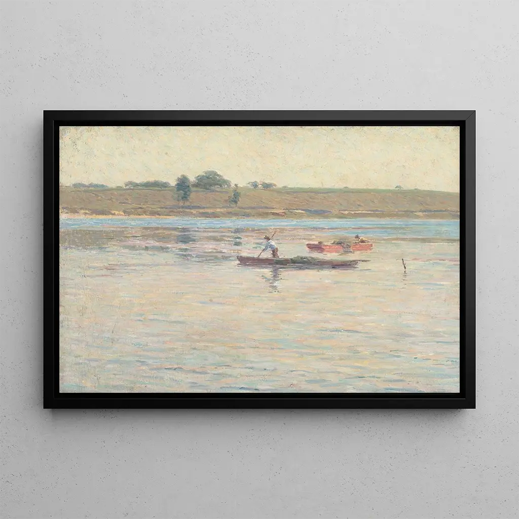 Landschap met vissers: een harmonie tussen mens en natuur Het "Landschap met vissers" is een boeiend kunstwerk dat de vreedzame coëxistentie tussen mens en omgeving illustreert. In deze landelijke scène zijn vissers druk bezig aan de rand van een waterloop, terwijl de omringende natuur in levendige kleuren bloeit. De zachte tinten van het doek, die weelderige groenen en rustgevende blauwen combineren, creëren een serene en contemplatieve sfeer. De gebruikte techniek, gekenmerkt door vloeiende penseelstreken, geeft een gevoel van beweging, alsof je het geruis van het water en het gezang van vogels kunt horen. Dit kunstwerk nodigt uit tot ontsnapping naar idyllische landschappen, ver weg van de dagelijkse drukte. Amerikaanse School: een reflectie van de wilde natuur De Amerikaanse School, actief in de 19e eeuw, speelde een cruciale rol in de ontwikkeling van landschapskunst in de Verenigde Staten. Deze artistieke beweging, beïnvloed door het Europese romantisme, benadrukte de wilde schoonheid en de uitgestrekte Amerikaanse landschappen. De kunstenaars uit die periode, wiens werken vaak poëtisch zijn, probeerden de grootsheid van de natuur vast te leggen terwijl ze elementen van het dagelijks leven integreerden. "Landschap met vissers" past perfect binnen deze traditie en getuigt van een tijd waarin de natuur zowel bron van inspiratie als levensonderhoud was. Dit kunstwerk weerspiegelt de inzet van de kunstenaars om de realiteit van hun tijd weer te geven, terwijl ze de schoonheid van Amerikaanse landschappen vieren. Een decoratief kunstwerk met vele voordelen Het kiezen van een kunstdruk van "Landschap met vissers" voor uw interieurdecoratie is een uitstekend idee. Dit kunstwerk past harmonieus in diverse ruimtes, of het nu in een woonkamer, kantoor of slaapkamer is. De kwaliteit van de kunstdruk garandeert een trouwheid aan de nuances en details van het originele werk, en brengt een vleugje elegantie en rust in uw interieur. De esthetische aantrekkingskracht van deze rustige scène, waarin mens en natuur in harmonie samenleven, maakt het tot een decoratief element dat uw gasten zal aanspreken en uw omgeving zal verrijken. Door deze doek aan uw collectie toe te voegen, geeft u uw ruimte een onmiskenbare artistieke en culturele dimensie.