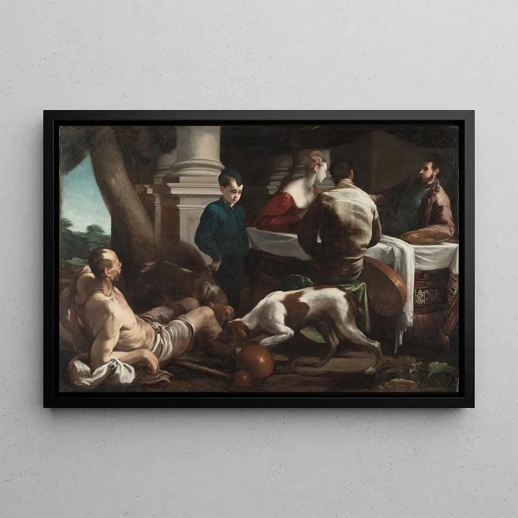 Jacopo Bassano, actief in de 16e eeuw, wordt erkend om zijn vaardigheid om licht en emotie vast te leggen in zijn werken. Geïnspireerd door de Venetiaanse school ontwikkelt hij een unieke stijl die realisme en spiritualiteit combineert. Zijn schilderijen, vaak gebaseerd op bijbelse verhalen, weerspiegelen de sociale en morele zorgen van zijn tijd. Bassano, die ook een innovator was in het gebruik van kleuren, heeft een blijvende erfenis achtergelaten in de kunstgeschiedenis, en beïnvloedde vele latere kunstenaars. "Lazare en de rijke man" is een perfect voorbeeld van zijn talent en vermogen om diepe boodschappen over te brengen via kunst.