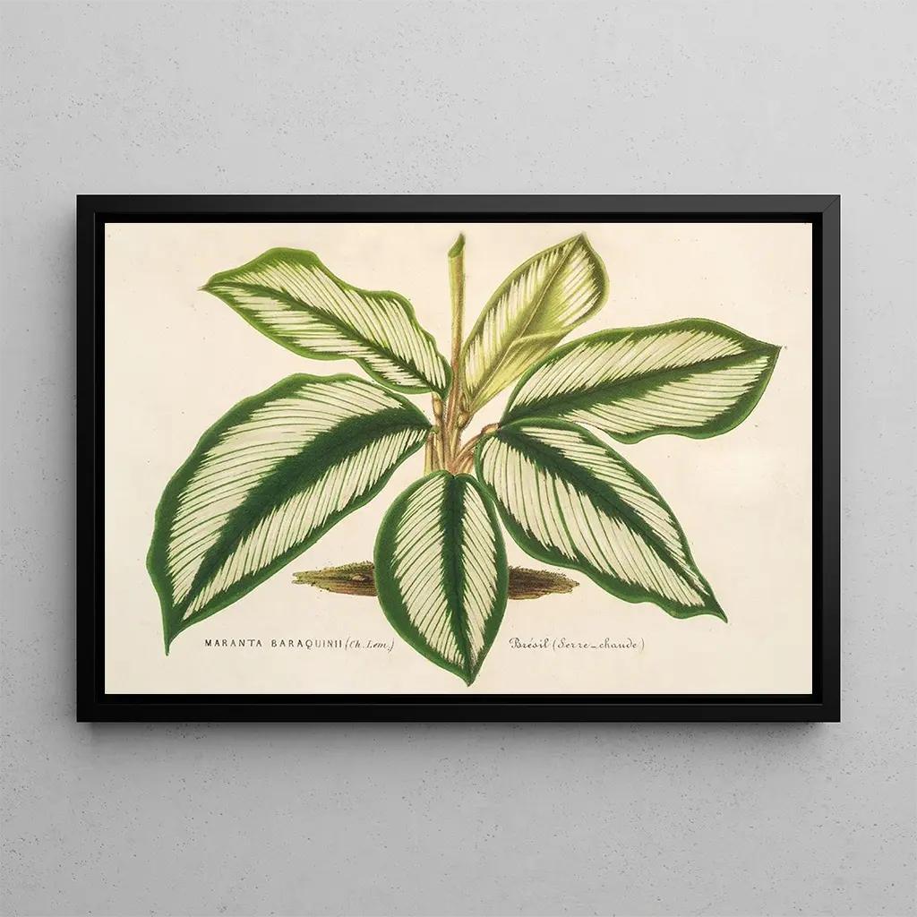Maranta Baraquinii : een viering van de biodiversiteit De doek "Maranta Baraquinii" van Charles Antoine Lemaire presenteert zich als een ware viering van de biodiversiteit. Dit botanische kunstwerk, rijk aan kleuren en details, benadrukt de unieke schoonheid van de Maranta-plant, bekend om haar fascinerende patronen op de bladeren. De levendige tinten groen, roze en crème mengen harmonieus, waardoor een levendige en dynamische sfeer ontstaat. Lemaire, met zijn precieze techniek, slaagt erin de essentie van deze plant vast te leggen en nodigt de kijker uit om onder te dompelen in de delicate wereld van de botanica. Charles Antoine Lemaire : een meester van de artistieke botanica Charles Antoine Lemaire, botanist en kunstenaar uit de 19e eeuw, wordt erkend om zijn minutieuze werk aan planten. Zijn wetenschappelijke en artistieke aanpak stelde hem in staat werken te produceren die botanische precisie en esthetiek combineren. Lemaire werd beïnvloed door de ontdekkingen van zijn tijd, vooral op het gebied van botanica, en heeft bijgedragen aan de documentatie van vele plantensoorten. Zijn artistieke nalatenschap blijft belangrijk, omdat hij de schoonheid van de natuur wist over te brengen via zijn illustraties, waardoor hij een iconische figuur is geworden in de botanische kunst. Een decoratieve aankoop met vele voordelen De kunstdruk van "Maranta Baraquinii" is een ideale decoratieve keuze om uw leefruimte te verfraaien, of het nu in een woonkamer, kantoor of slaapkamer is. De afdrukkwaliteit garandeert een uitzonderlijke fideliteit aan het originele werk, waardoor elk detail met opmerkelijke helderheid kan worden gewaardeerd. De esthetische aantrekkingskracht van deze doek ligt in haar vermogen om een vleugje frisheid en natuur aan uw interieur toe te voegen. Door dit kunstwerk in uw decoratie te integreren, creëert u een uitnodigende en inspirerende sfeer, perfect voor natuurliefhebbers.