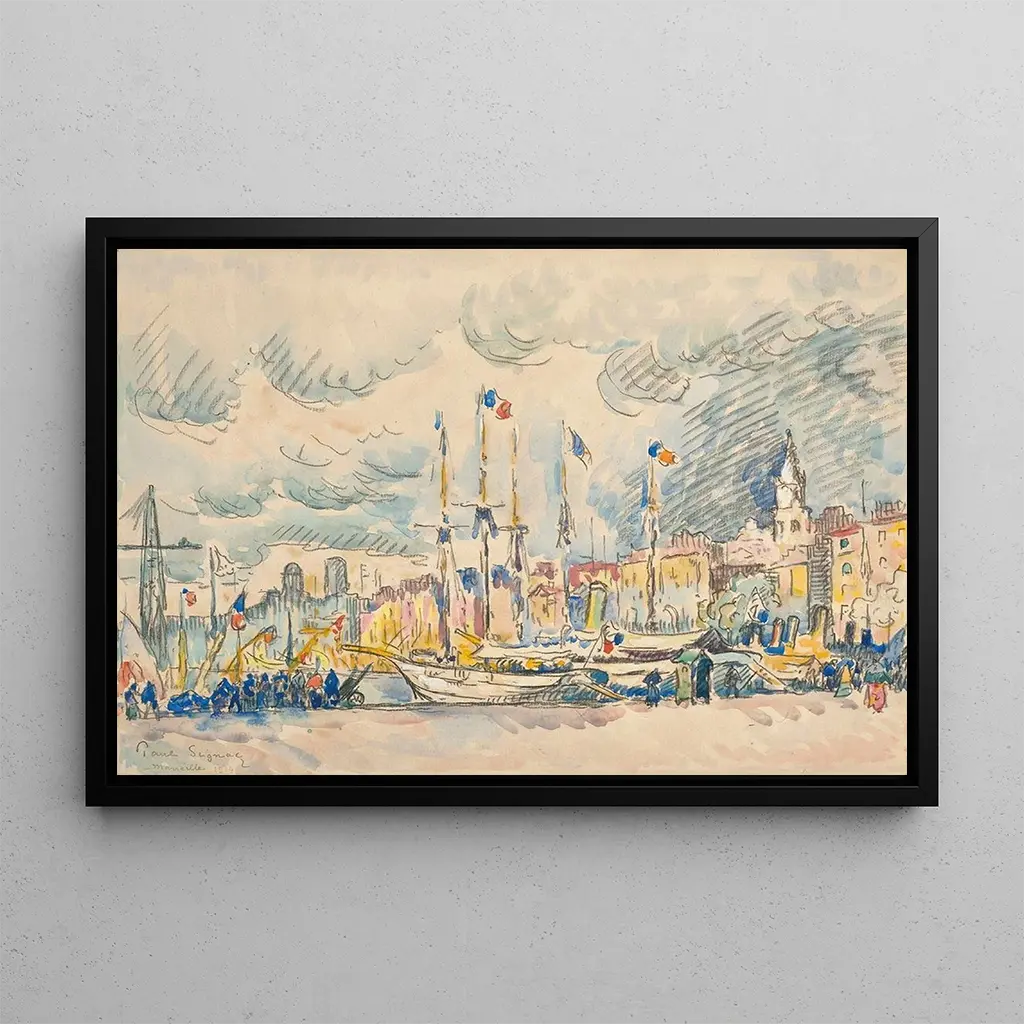 Marseille, de kade: een levendige scène aan de waterkant Marseille, de kade van Paul Signac toont een levendig uitzicht op de haven, waar de boten zachtjes wiegen op de golven. De felle kleuren en de dynamische penseelstreken brengen deze maritieme scène tot leven, en roepen de energie en beweging van de stad op. Signac, meester van het pointillisme, gebruikt naast elkaar geplaatste kleurvlakken om een stralende helderheid te creëren, en eert de schoonheid van het stedelijke landschap. De sfeer van dit schilderij is zowel levendig als rustgevend, en nodigt de kijker uit om onder te dompelen in de bedrijvigheid van de haven. Paul Signac: pionier van het pointillisme en kleur Paul Signac, iconische figuur van de neo-impressionistische beweging, speelde een cruciale rol in de evolutie van de kunst aan het begin van de 20e eeuw. Geïnspireerd door Georges Seurat, ontwikkelde hij de techniek van het pointillisme, waarbij puntjes kleur op het doek worden aangebracht om effecten van licht en textuur te creëren. Signac reisde door Frankrijk en legde maritieme en stedelijke landschappen vast, terwijl hij vasthield aan het idee dat kleur emoties kon uitdrukken. Zijn werk markeerde niet alleen zijn tijd, maar blijft ook vele hedendaagse kunstenaars inspireren. Een decoratieve aankoop met vele voordelen De kunstdruk van Marseille, de kade is een uitzonderlijke decoratieve keuze om een maritiem tintje aan uw ruimte toe te voegen. Of het nu in een kantoor, woonkamer of eetkamer is, dit schilderij roept de warmte en levendigheid van de Middellandse Zee op. De kwaliteit van de kunstdruk garandeert een trouwheid aan de nuances en details van het originele werk, zodat u dagelijks kunt genieten van de signaciaanse esthetiek. Met zijn onmiskenbare charme verrijkt dit doek uw inrichting en viert het de levendige geest van Marseille.