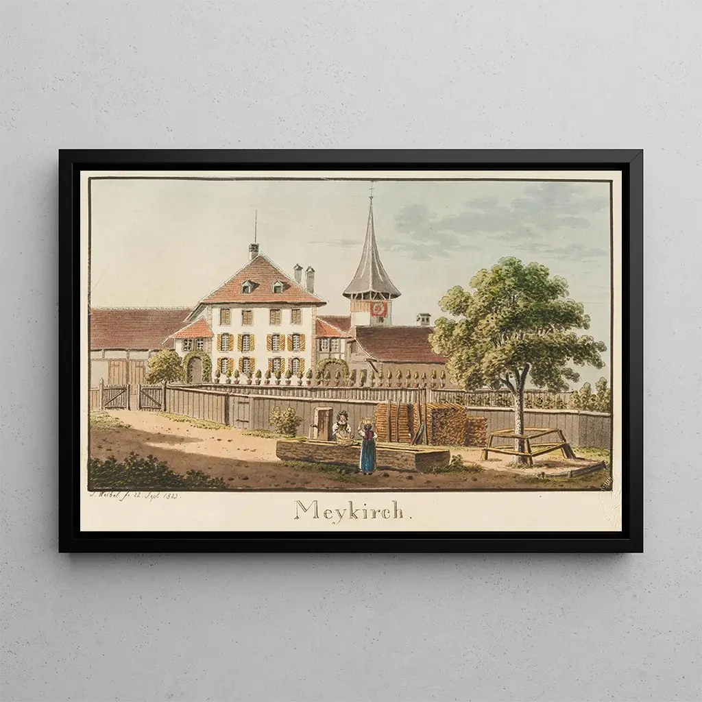 Meykirch : een scène uit het leven doordrenkt van nostalgie De kunstdruk "Meykirch" van Jakob Samuel Weibel brengt ons in een landelijk landschap vol charme en rust. Dit doek roept een idyllisch tafereel op, waar natuur en architectuur harmonieus samenkomen. De zachte, aardse kleuren, gecombineerd met accenten van groen en blauw, creëren een rustgevende, bijna nostalgische sfeer. De compositie benadrukt elementen uit het dagelijks leven en nodigt de kijker uit om zich onder te dompelen in de eenvoudige schoonheid van deze bevroren momenten in de tijd. "Meykirch" is een ode aan het landelijke leven, en viert de schoonheid van het landschap en tradities. Jakob Samuel Weibel : een getuige van zijn tijd Jakob Samuel Weibel, Zwitsers kunstenaar uit de 19e eeuw, onderscheidde zich door zijn weergaven van het landelijke leven en Zwitserse landschappen. Zijn stijl, beïnvloed door het romantisme, benadrukt de schoonheid van de natuur en de eenvoud van scènes uit het dagelijks leven. Weibel wist de essentie van zijn tijd vast te leggen en getuigde van sociale en economische veranderingen die Zwitserland hebben gevormd. Zijn werken, waaronder "Meykirch", zijn vensters op een veranderende wereld, waarin natuur en mens in harmonie samenleven. De waarde van zijn werk ligt in zijn vermogen om emoties op te roepen en de schoonheid van het Zwitserse landschap te vieren. Een decoratief stuk met vele voordelen De kunstdruk van het schilderij "Meykirch" van Jakob Samuel Weibel is een ideale keuze om uw interieur te verfraaien, of het nu in een woonkamer, eetkamer of kantoor is. De hoge kwaliteit van de afdruk en de trouw aan de originele details maken het een pronkstuk dat de aandacht trekt en bewondering oproept. Door deze doek in uw decoratie te integreren, brengt u een vleugje natuur en sereniteit in uw ruimte. De esthetische aantrekkingskracht van deze kunstdruk zal een warme en gastvrije sfeer creëren, terwijl het eer betoont aan het artistieke erfgoed van een meester van het Zwitserse landschap.