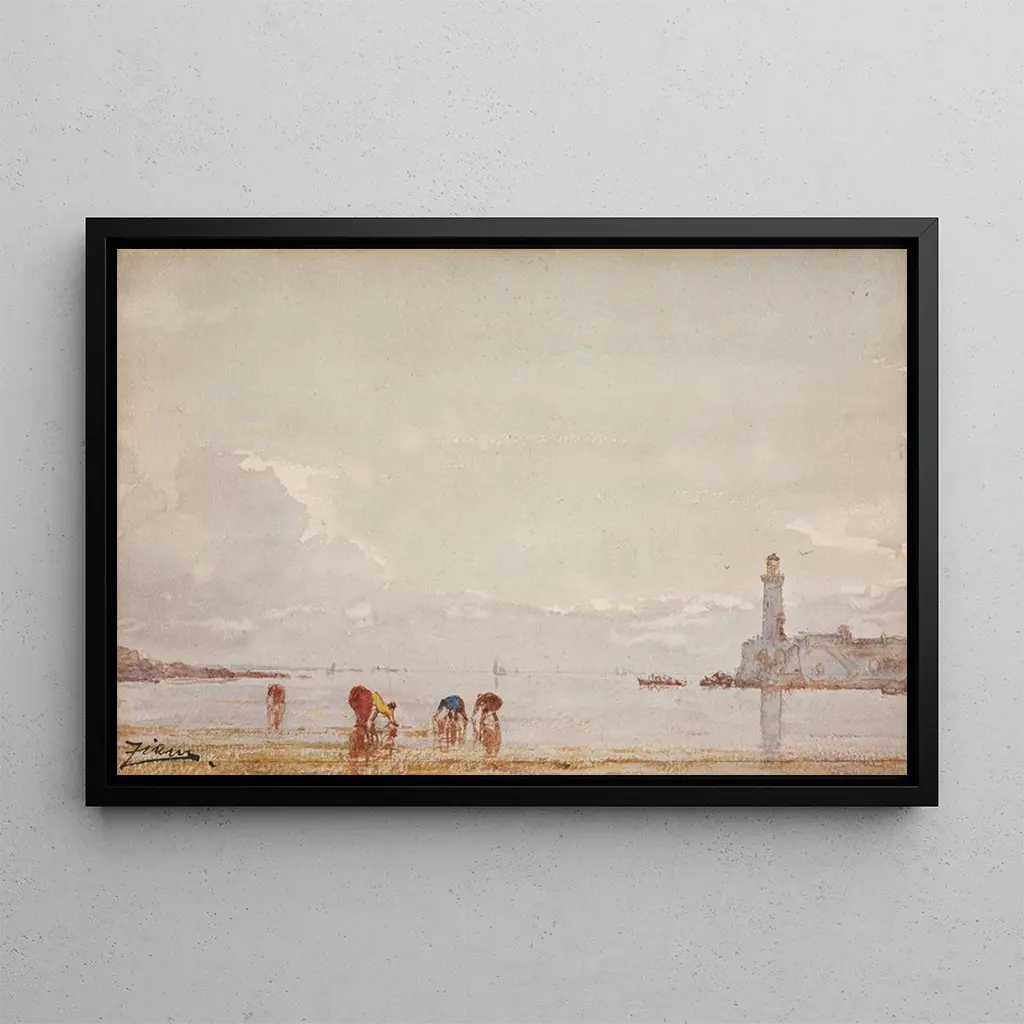 Prachtige kunstdruk van "Vissers met schelpen in Antibes": een dans tussen zee en licht In dit levendige kunstwerk vangt Félix Ziem de essentie van de Middellandse Zee met een heldere kleurenpalet. De vissers, delicate silhouetten, lijken te dansen op het ritme van de golven, terwijl de lucht zich kleurt in gouden en azuurblauwe tinten. Ziem's techniek, die olie en licht combineert, creëert een bijna etherische sfeer, waarin elke penseelstreek de beweging van het water en de zachtheid van het klimaat oproept. De compositie, in balans tussen land en zee, nodigt de kijker uit om zich onder te dompelen in dit schilderij, de zeebries te voelen en het geruis van de golven te horen. Félix Ziem: een meester van het maritieme landschap Félix Ziem, Franse schilder uit de 19e eeuw, wordt erkend om zijn maritieme landschappen en uitzicht op Venetië. Geïnspireerd door de romantische beweging en de impressionisten, ontwikkelde hij een unieke stijl die realisme en poëzie combineert. Zijn reizen door Europa, vooral in Italië en de Middellandse Zee, hebben zijn werk diep beïnvloed. Ziem wist het licht en de sfeer van de plaatsen die hij schilderde vast te leggen, waardoor hij een voorloper van het impressionisme werd. Zijn artistieke nalatenschap blijft bestaan, en zijn werken blijven kunstenaars en verzamelaars inspireren. Een decoratief stuk met vele voordelen De kunstdruk van "Vissers met schelpen in Antibes" is een ideale keuze om uw interieur te verfraaien. Of het nu in een woonkamer, kantoor of slaapkamer is, dit schilderij brengt een gevoel van rust en ontsnapping. De kwaliteit van de afdruk en de trouw aan de originele kleuren garanderen een onmiskenbare esthetische aantrekkingskracht. Door deze doek te kiezen, brengt u niet alleen een stukje geschiedenis in uw ruimte, maar ook een kunstwerk dat contemplatie en bewondering oproept. Transformeer uw decoratie met dit meesterwerk dat de tijdloze schoonheid van de zee oproept.