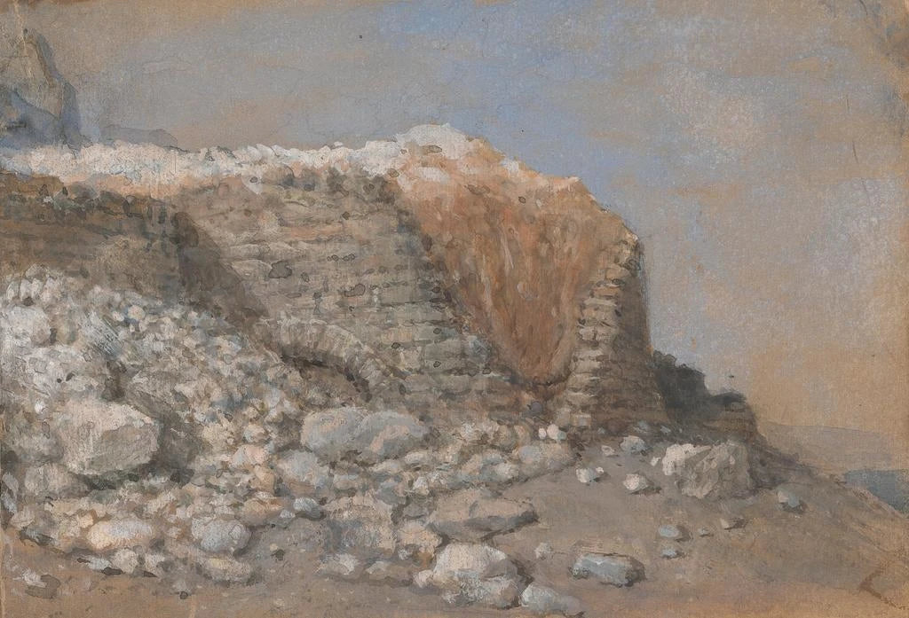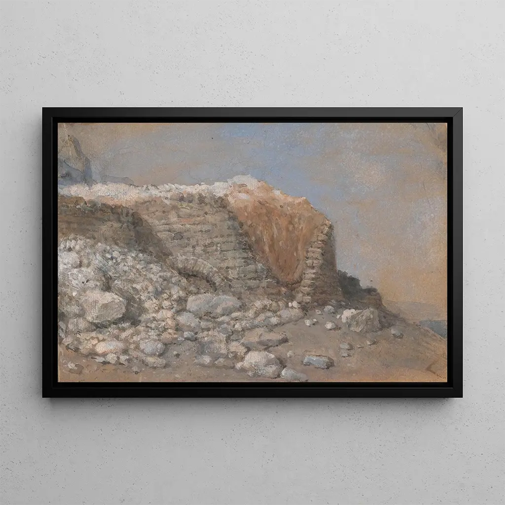 Clarkson Stanfield, Britse schilder uit de 19e eeuw, wordt erkend voor zijn maritieme landschappen en zijn weergaven van de natuur. Opgegroeid in een tijd waarin romantiek en realisme hand in hand gingen, wist hij de majesteit van de Britse kusten vast te leggen met een unieke gevoeligheid. Geïnspireerd door kunstenaars zoals J.M.W. Turner, ontwikkelde Stanfield een stijl die precisie en expressiviteit combineert. Zijn werken, waaronder "Muur van steen", getuigen van zijn inzet om de natuurlijke schoonheid te weergeven terwijl hij de menselijke emoties verkent bij de immensheid van de zee en landschappen.