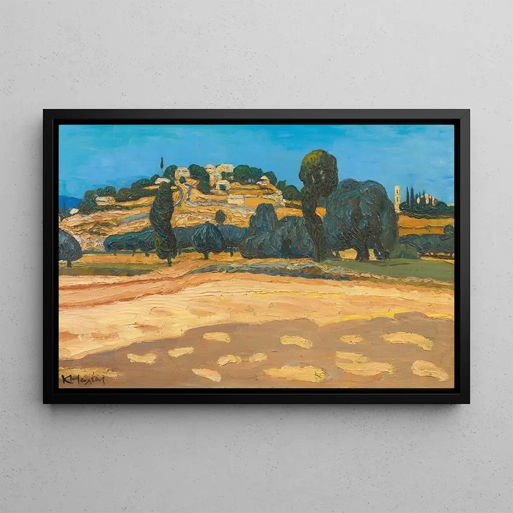Naxos : een ontsnapping naar de mediterrane schoonheid De kunstdruk Naxos van Konstantinos Maleas brengt ons naar het hart van de betoverende landschappen van de Egeïsche Zee. De tinten blauw, die harmonieus mengen met groene en zandkleurige accenten, roepen een sfeer van sereniteit en contemplatie op. De impressionistische techniek van Maleas, gekenmerkt door vrije en expressieve penseelstreken, brengt dit doek tot leven en creëert een gevoel van beweging en licht. Elk element, van de golven tot de heuvels, lijkt te vibreren onder de stralende zon, en nodigt de kijker uit om onder te dompelen in deze idyllische scène. Konstantinos Maleas : een meester van het Griekse landschap Iconisch kunstenaar van het begin van de 20e eeuw, wordt Konstantinos Maleas erkend om zijn rol in de Griekse impressionistische beweging. Opgeleid aan de School voor Schone Kunsten van Athene, werd hij beïnvloed door de landschappen van zijn geboorteland en door de grote Europese meesters. Maleas wist het licht en de kleur van Griekenland vast te leggen, waardoor zijn werken levendige getuigenissen worden van natuurlijke schoonheid. Zijn stijl, zowel persoonlijk als geworteld in de traditie, markeerde een tijd waarin kunst probeerde los te komen van academische conventies. Een decoratief stuk met vele voordelen Kiezen voor een kunstdruk van het schilderij Naxos betekent kiezen voor een decoratief stuk dat een mediterrane toets aan uw interieur toevoegt. Of het nu in een woonkamer, kantoor of slaapkamer is, deze doek zal aanspreken door zijn esthetische aantrekkingskracht en zijn vermogen om een rustgevende sfeer te creëren. De kwaliteit van de kunstdruk garandeert een trouwheid aan de kleuren en details van het originele werk, zodat u kunt genieten van een ongeëvenaarde artistieke sfeer. Door dit werk aan uw decoratie toe te voegen, brengt u niet alleen schoonheid in uw ruimte, maar ook een stukje van het culturele erfgoed van Griekenland.
