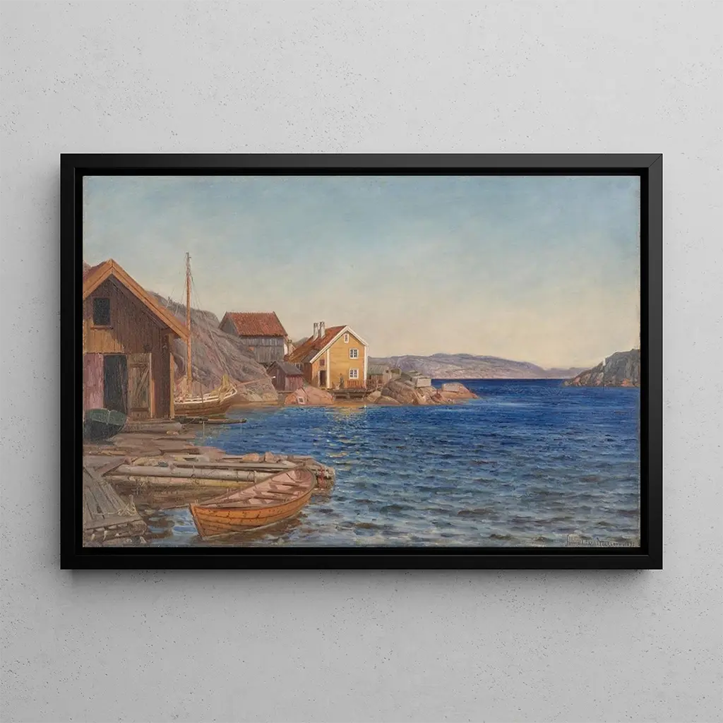 De kunstdruk van Matin à Ny-Hellesund is een ideaal decoratief stuk om een vleugje sereniteit aan uw interieur toe te voegen. Of het nu in een woonkamer, kantoor of slaapkamer is, dit schilderij roept een rustgevende sfeer op die uitnodigt tot dromen. De kwaliteit van de reproductie garandeert een trouwheid aan de details en kleuren van het originele werk, zodat u kunt genieten van de verfijnde esthetiek van Amaldus Nielsen. Met zijn visuele aantrekkingskracht en ontspannende sfeer past deze doek perfect in diverse decoratiestijlen, waardoor het een slimme keuze is om uw leefruimte te verfraaien.