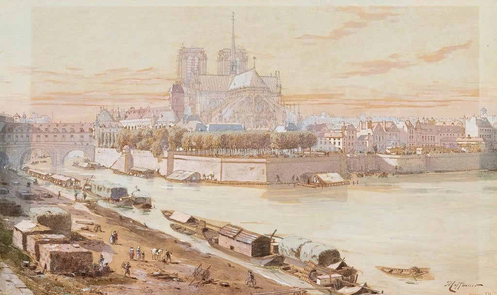 Notre-Dame en het bisschoppelijk paleis in 1750 - Fédor Hoffbauer