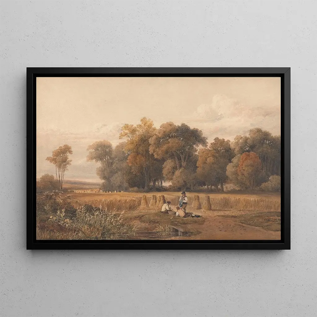 In "Reproductie, de middaghap" vangt Charles Vincent Barber een moment van rust in het hart van een werkdag. De compositie benadrukt boeren die rusten onder een heldere hemel, waar de nuances van groen in de velden contrasteren met de warme tinten van de aarde. De minutieuze details van de gezichten en kleding van de personages, evenals het vakkundige gebruik van licht, creëren een rustige en contemplatieve sfeer. Dit doek roept niet alleen de inspanning van de arbeiders op, maar ook de schoonheid van het landelijke landschap, en nodigt de kijker uit om zich onder te dompelen in deze scène van eenvoudig en authentiek leven.