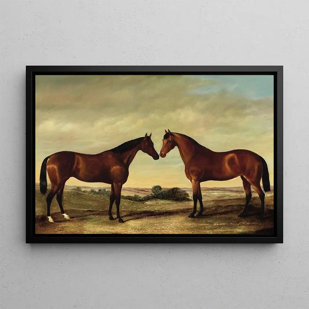 Paar paarden: een majestueuze dans in de natuur De kunstdruk van het doek "Paar paarden" van James Clark roept een verbluffende harmonie op tussen de dieren en hun omgeving. De paarden, majestueus en krachtig, staan trots, hun spieren gespannen onder een glanzende vacht. De aardse kleuren en de tinten groen creëren een serene sfeer, terwijl het zachte licht de vormen streelt en de fijne details van de scène benadrukt. De techniek van de kunstenaar, die realisme en impressionisme combineert, laat de vitaliteit en energie van deze wezens voelen en nodigt de kijker uit om te duiken in een moment van rust en contemplatie. James Clark: een meester in dierenrealisme James Clark, actief in de 19e eeuw, wordt erkend om zijn werken die de schoonheid van dieren in hun natuurlijke habitat benadrukken. Geïnspireerd door de grote meesters van zijn tijd, heeft hij een unieke stijl ontwikkeld die precisie en gevoeligheid combineert. Zijn schilderijen, vaak doordrenkt met een romantische sfeer, getuigen van een diepe bewondering voor de natuur en de dieren. Clark heeft de essentie van zijn onderwerpen weten vast te leggen, waardoor hij een onmisbare kunstenaar is geworden in het domein van dierenrealisme. Zijn werken blijven inspireren en fascineren, en onderstrepen het belang van de weergave van de fauna in de kunst. Een decoratief stuk met vele voordelen De kunstdruk van "Paar paarden" is een ideaal decoratief stuk om je interieur te verrijken, of het nu in een woonkamer, kantoor of slaapkamer is. De afdrukkwaliteit garandeert een opmerkelijke fideliteit aan de details en kleuren van het originele werk, en brengt een vleugje elegantie en rust in je ruimte. Dit schilderij, met zijn onmiskenbare esthetische aantrekkingskracht, zal kunstliefhebbers en natuurliefhebbers zeker aanspreken. Door deze doek in je decoratie te integreren, geef je je omgeving een warme en gastvrije sfeer en eren we tegelijkertijd de kunst van James Clark.