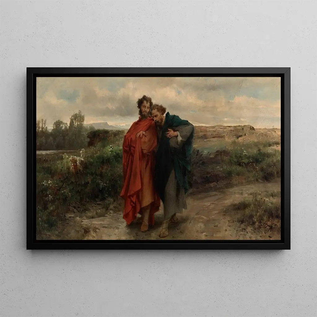 Chemin vers Emmaüs : een spirituele openbarende ontmoeting De kunstdruk van Chemin vers Emmaüs, een werk van Johann Till de Jeune, roept een intens spiritueel openbaringsmoment op. In deze iconische scène lopen twee discipelen naast een mysterieuze reiziger, hun gezichten uitdrukking gevend aan zowel nieuwsgierigheid als verbazing. De warme, aardse kleuren creëren een intieme sfeer, terwijl het zachte licht de uitdrukkingen van de personages benadrukt. De vakkundig uitgebalanceerde compositie leidt de blik van de kijker door het schilderij, uitnodigend tot een diepe contemplatie van de scène. Elk detail, van de kleding tot de omliggende landschappen, draagt bij aan de voelbare emotie die uitgaat van deze goddelijke ontmoeting. Johann Till de Jeune : een kunstenaar van spirituele vernieuwing Johann Till de Jeune, een schilder actief in de 17e eeuw, wordt erkend om zijn religieuze werken die de spirituele zorgen van zijn tijd weerspiegelen. Geïnspireerd door de barokke stroming, wist hij realisme en symboliek te combineren, waardoor hij schilderijen creëerde die zowel het verstand als de ziel aanspreken. Chemin vers Emmaüs is een van zijn meesterwerken, dat een bijbelse scène uitbeeldt die vele kunstenaars door de eeuwen heen heeft geïnspireerd. Till de Jeune wist de essentie van het christelijk geloof vast te leggen, waardoor zijn werken tijdloos en universeel zijn. Zijn artistieke nalatenschap blijft invloed uitoefenen op kunstliefhebbers en zoekers naar spirituele authenticiteit. Een decoratief stuk met vele voordelen De kunstdruk van Chemin vers Emmaüs is een decoratief stuk dat elke leefruimte verrijkt. Of het nu in een woonkamer, eetkamer of kantoor is, dit doek brengt een vleugje sereniteit en spirituele diepgang. De kwaliteit van de kunstdruk garandeert een trouwheid aan de nuances en details van het originele werk, zodat u dagelijks kunt genieten van de esthetische aantrekkingskracht. Door dit schilderij in uw interieur te integreren, geeft u uw ruimte een contemplatieve dimensie en stimuleert u reflecties over geloof en menselijke ontmoeting.
