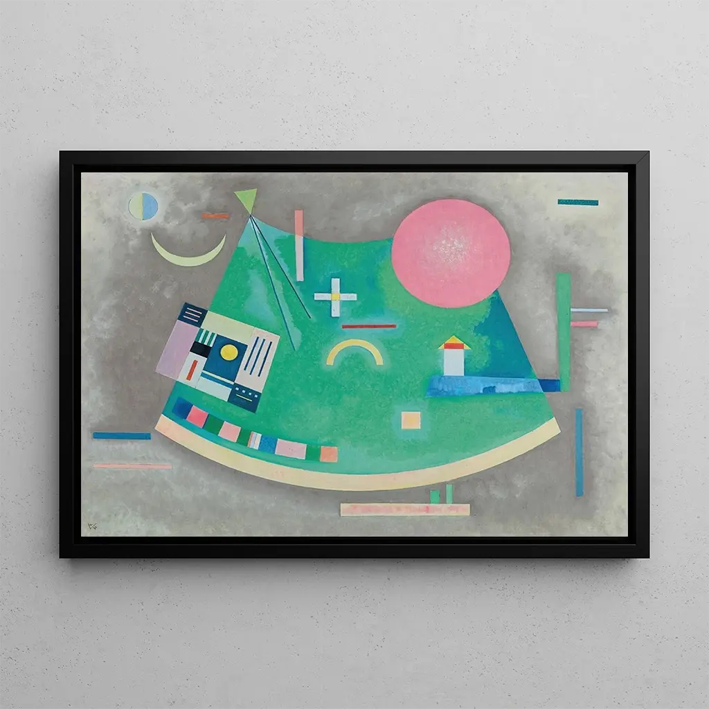 Flèche naar de Cirkel: een verkenning van vormen en kleuren In deze kunstdruk van Flèche naar de Cirkel dompelt Wassily Kandinsky ons onder in een abstract universum waar geometrische vormen en levendige kleuren zich verweven. Dit schilderij, een iconisch werk van de expressionistische beweging, roept een boeiende visuele dynamiek op, waarbij de pijl lijkt te wijzen naar een mysterieuze cirkel, mogelijk symboliserend een spirituele zoektocht of een zoektocht naar harmonie. De heldere kleuren, variërend van rood tot blauw, creëren spanning en energie die de blik trekken, terwijl de evenwichtige compositie uitnodigt tot nadenken over de relatie tussen kunst en emotie. Wassily Kandinsky: pionier van de abstracte kunst Wassily Kandinsky, geboren in Rusland in 1866, wordt vaak beschouwd als een van de pioniers van de abstracte kunst. Geïnspireerd door muziek, probeerde hij emoties te vertalen via vormen en kleuren, in de overtuiging dat kunst de figuratieve voorstelling moest overstijgen. Kandinsky was een actief lid van de beweging Der Blaue Reiter, die persoonlijke expressie en experimentatie predikte. Flèche naar de Cirkel, gemaakt in 1925, illustreert perfect zijn vernieuwende aanpak, waarin spiritualiteit en abstractie samenkomen. Zijn werk heeft een blijvende invloed gehad op de moderne kunst en heeft de weg geëffend voor nieuwe vormen van artistieke expressie. Een decoratief aanwinst met vele voordelen Deze kunstdruk van Flèche naar de Cirkel is een gedurfde toevoeging aan uw interieur, die een eigentijdse en dynamische toets geeft aan elke ruimte. Of het nu in een woonkamer, kantoor of slaapkamer is, dit kunstwerk trekt de aandacht en wekt nieuwsgierigheid. De kwaliteit van de reproductie garandeert een trouwheid aan de kleuren en vormen van het originele werk, zodat u dagelijks kunt genieten van de energie van Kandinsky. Door dit stuk in uw interieur te integreren, kiest u niet alleen voor een kunstwerk, maar ook voor een bron van inspiratie en reflectie op de schoonheid van abstractie.