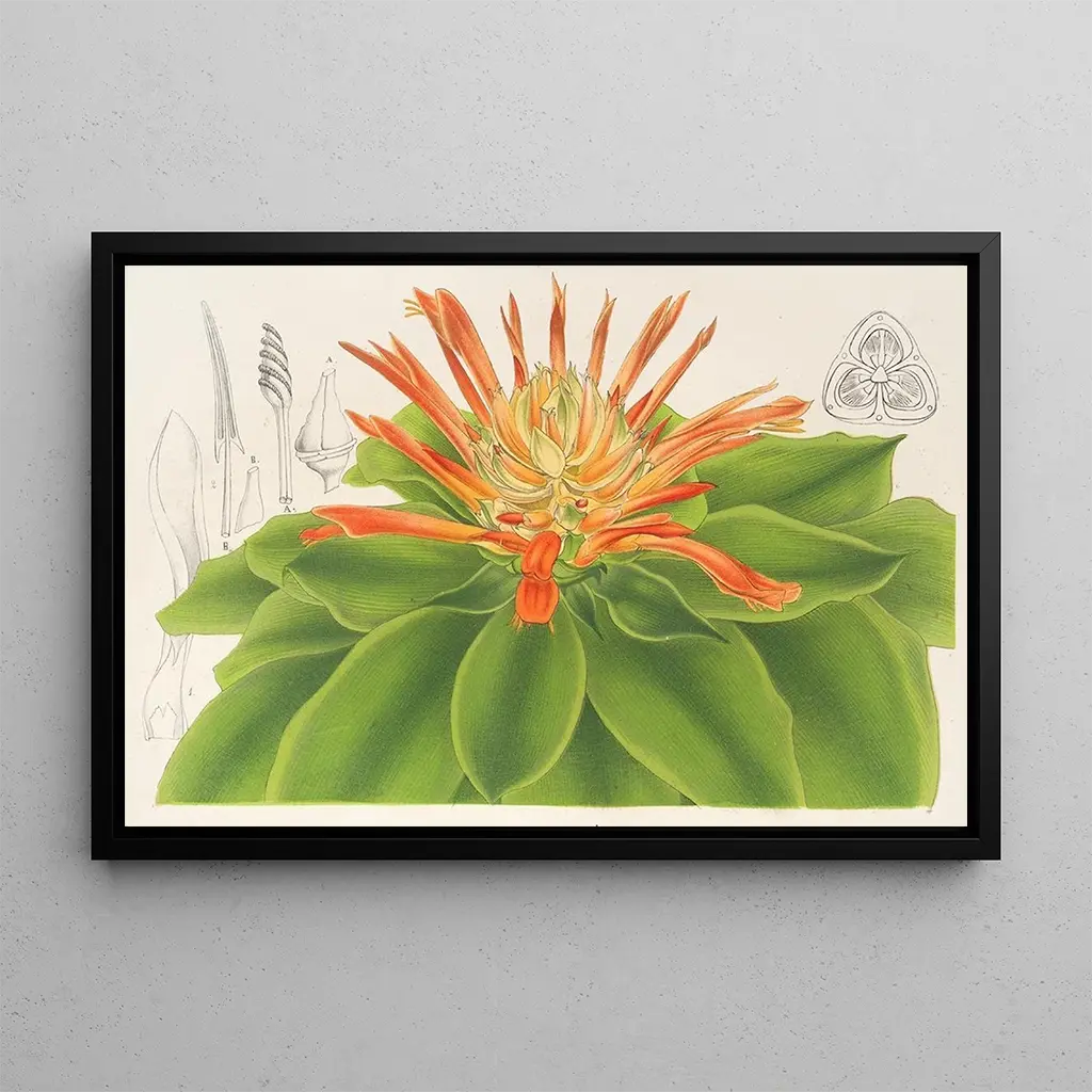 Pitcairnia tabuliformis : een explosie van tropische kleuren De kunstdruk van Pitcairnia tabuliformis dompelt ons onder in een levendige wereld waar de natuur zich uitdrukt met een verbluffende intensiteit. De heldere tinten groen, rood en geel mengen harmonieus, waardoor een sfeer ontstaat die zowel warm als verfrissend is. De techniek van de kunstenaar, die speelt met licht en schaduw, benadrukt de reliëf van de bladeren en bloemen, waardoor deze botanische kunstwerk tot leven komt. Elk detail wordt zorgvuldig weergegeven, waardoor de kijker wordt uitgenodigd om de schoonheid van de vormen en kleuren die deze tropische scène vormen, te bewonderen. Charles Antoine Lemaire : een pionier in botanische kunst Charles Antoine Lemaire, botanist en kunstenaar uit de 19e eeuw, wist wetenschap en esthetiek te combineren in zijn werken. Geïnspireerd door de botanische ontdekkingen van zijn tijd, wijdde hij zijn carrière aan de getrouwe weergave van exotische planten. Lemaire wordt erkend om zijn minutieuze aanpak en zijn oog voor detail, wat hem in staat stelde de essentie van de soorten die hij schilderde, vast te leggen. Zijn werk heeft bijgedragen aan de popularisering van botanische kunst, waardoor hij een onmisbare figuur is geworden in dit vakgebied. Zijn werken, zoals de kunstdruk van Pitcairnia tabuliformis, getuigen van zijn talent en passie voor de natuur. Een decoratief stuk met vele voordelen Kiezen voor de kunstdruk van Pitcairnia tabuliformis betekent kiezen voor een doek die een vleugje exotisme aan uw interieur toevoegt. Of het nu in een woonkamer, kantoor of slaapkamer is, dit kunstwerk zal de aandacht trekken en gesprekken uitlokken. De kwaliteit van de afdruk garandeert een trouwheid aan de kleuren en details van het origineel, terwijl het een onmiskenbare esthetische aantrekkingskracht biedt. Door deze kunstdruk aan uw decoratie toe te voegen, creëert u een ruimte waar natuur en kunst samenkomen, en een warme en gastvrije sfeer brengen.