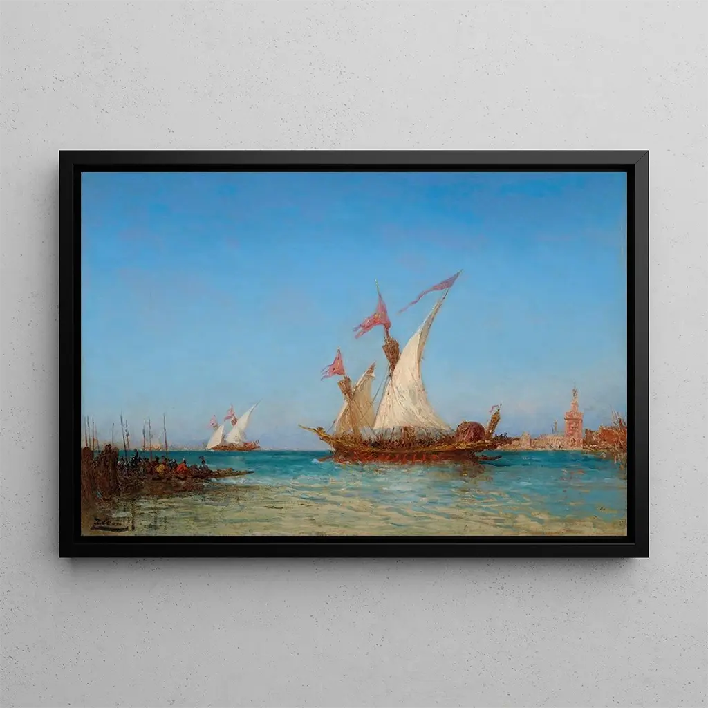 Regatta's in Venetië: een waterballet onder de azuurblauwe hemel In dit iconische kunstwerk vangt Félix Ziem de essentie van Venetië, waar de witte zeilen van de boten dansen op het glinsterende water. De levendige kleuren, variërend van diepe blauwen tot heldere geeltonen, creëren een levendige en vrolijke sfeer. Ziem's techniek, die olie en delicate penseelstreken combineert, brengt elke reflectie op het water tot leven. Toeschouwers worden uitgenodigd om zich onder te dompelen in dit schilderij, de lichte bries te voelen en te genieten van het spektakel van de regatta's, een ware ode aan de schoonheid van de Venetiaanse lagune. Félix Ziem: een meester van het maritieme landschap Franse kunstenaar uit de 19e eeuw, Félix Ziem staat bekend om zijn maritieme en stedelijke landschappen, vooral die van Venetië. Geïnspireerd door de romantische beweging ontwikkelde hij een unieke stijl die realisme en impressionisme combineert. Ziem reisde door Europa, nam de lichtinvloeden en atmosfeer van de plaatsen die hij schilderde in zich op. Zijn vermogen om de magie van Venetië vast te leggen, heeft hem een prominente plaats in de kunstgeschiedenis opgeleverd. Zijn werken blijven kunstliefhebbers en verzamelaars inspireren, wat de betekenis van zijn artistieke nalatenschap onderstreept. Een decoratief kunstwerk met vele voordelen De kunstdruk van "Regatta's in Venetië" is een perfecte keuze om uw interieur te verfraaien, of het nu in een woonkamer, kantoor of slaapkamer is. De kwaliteit van de reproductie garandeert een nauwkeurige weergave van de details en kleuren van het originele kunstwerk, en voegt een vleugje elegantie en verfijning toe aan uw decoratie. Dit schilderij roept emoties en reisherinneringen op, terwijl het een artistieke dimensie aan uw ruimte toevoegt. Door voor dit doek te kiezen, geeft u uw interieur een pronkstuk dat alle blikken zal trekken.