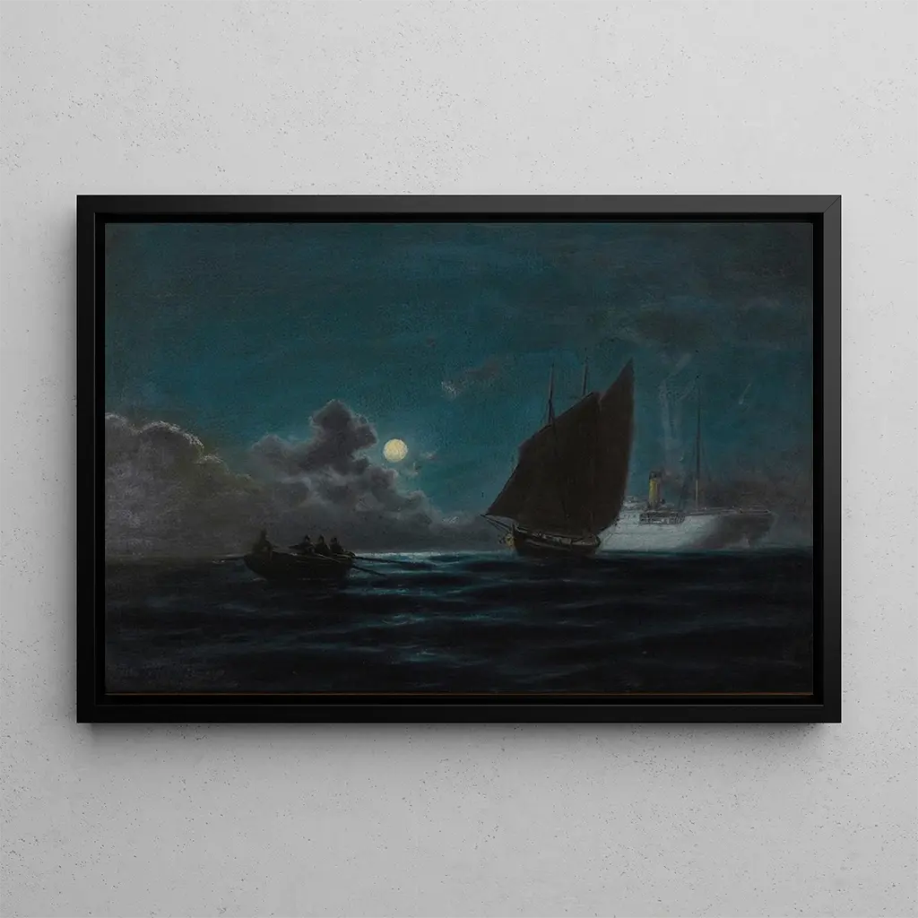 Schepen bij maanlicht: een poëtische dans op de nachtelijke golven De kunstdruk Schepen bij maanlicht van Emilios Prosalentis roept een maritiem tafereel op dat doordrenkt is van rust. De schepen, delicately verlicht door het maanlicht, lijken te drijven op een kalme zee, terwijl de sterrenhemel een mystieke dimensie aan het geheel toevoegt. De nuances van blauw en zilver mengen harmonieus, waardoor een rustgevende en contemplatieve sfeer ontstaat. De techniek van Prosalentis, gekenmerkt door vloeiende en precieze penseelstreken, brengt dit werk tot leven en nodigt de kijker uit om zich onder te dompelen in dit betoverende nachtlandschap. Emilios Prosalentis: een meester van het maritieme landschap Emilios Prosalentis, Griekse schilder uit de 19e eeuw, is erkend om zijn weergaven van de zee en kustlandschappen. Geïnspireerd door het romantisme, onderscheidt zijn werk zich door een bijzondere aandacht voor licht- en reflectie-effecten op het water. Prosalentis heeft de essentie van de Middellandse Zee weten vast te leggen, terwijl hij elementen van de Europese artistieke traditie integreerde. Zijn carrière, gekenmerkt door exposities door heel Europa, heeft bijgedragen aan het bekend maken van Grieks maritiem kunst, waardoor Prosalentis een belangrijke figuur van zijn tijd is geworden. Een decoratief stuk met vele voordelen De kunstdruk van het schilderij Schepen bij maanlicht is een ideaal decoratief stuk om een vleugje rust aan uw interieur toe te voegen. Of het nu in een woonkamer, kantoor of slaapkamer is, dit doek roept een rustige en dromerige sfeer op. De kwaliteit van de afdruk garandeert een goede kleurgetrouwheid en details, zodat u volop kunt genieten van de schoonheid van het originele werk. Met zijn onmiskenbare esthetische aantrekkingskracht zal deze kunstdruk liefhebbers van kunst aanspreken en uw interieurdecoratie verrijken.